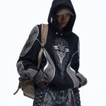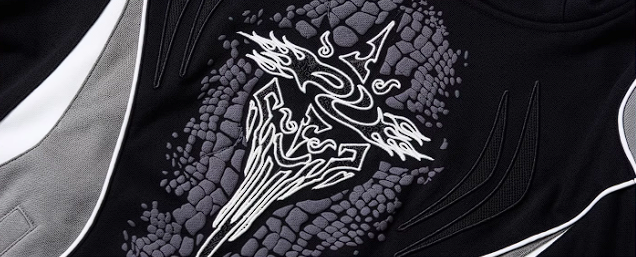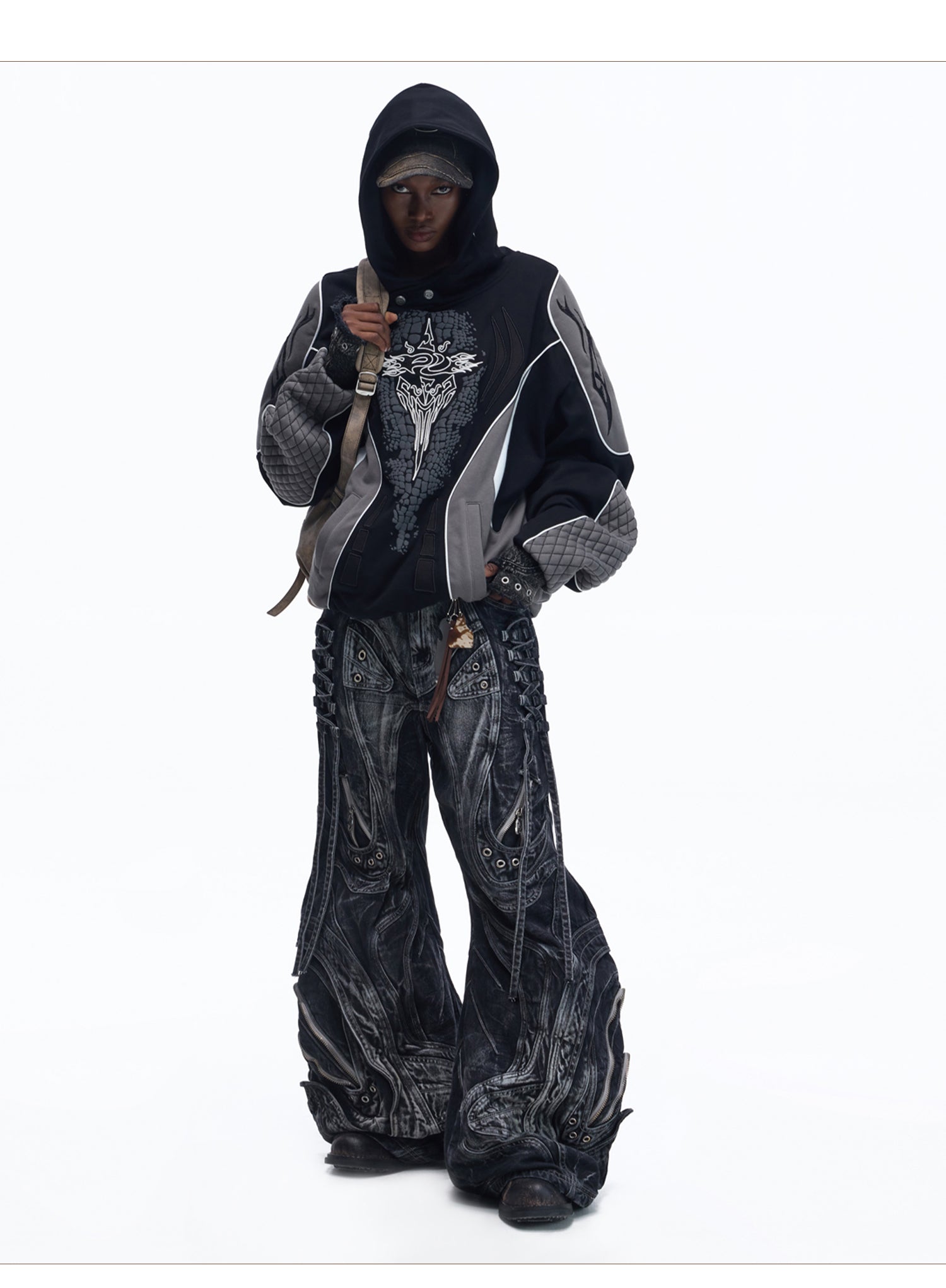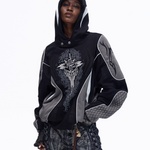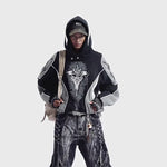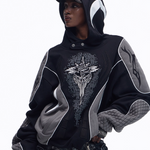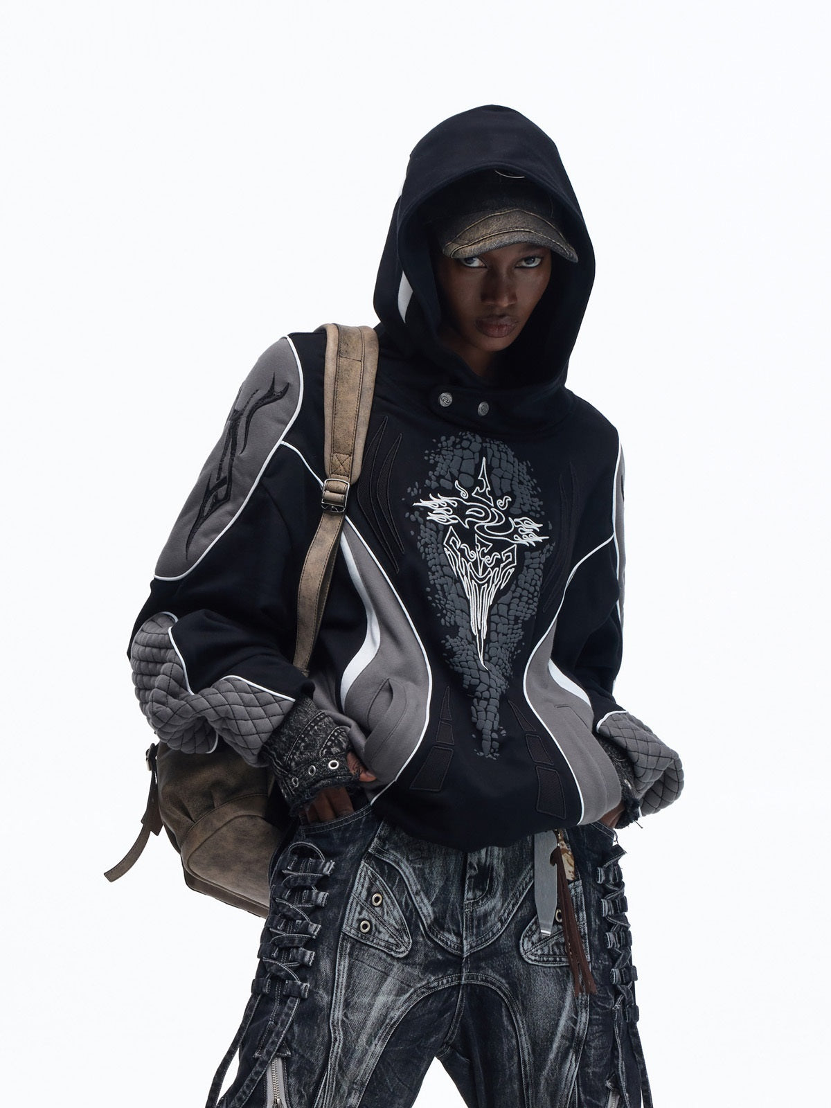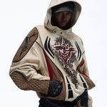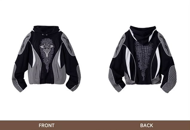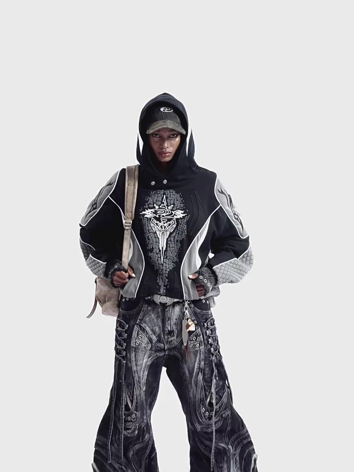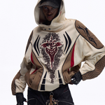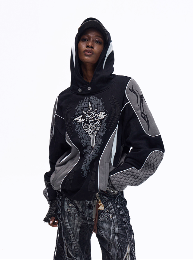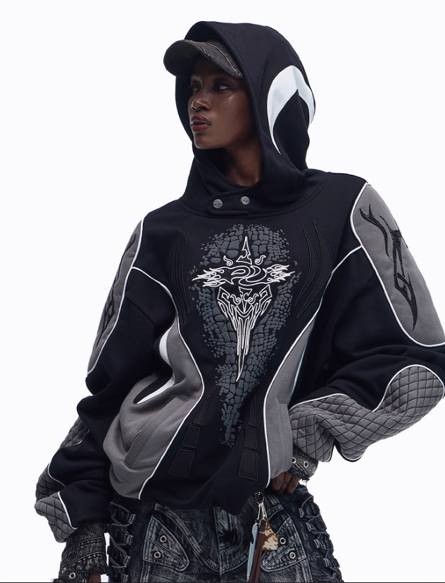 Unser Racing Cobra Hoodie definiert luxuriöse Opium Fashion durch seine innovative Multi-Panel-Konstruktion im Racing-Style neu. Das spektakuläre Design zeigt ein zentrales Cobra-Sword-Emblem mit detaillierter Schlangenhaut-Textur, das von dramatischen Racing-Stripes und geometrischen Panels umgeben ist. Die kontrastreichen Farbkombinationen schaffen einen dynamischen, motorsport-inspirierten Look. Gesteppte Details an den Unterarmen verleihen dem Hoodie zusätzliche Dimension und Racing-Authentizität. Die oversized Passform mit extra-großer Kapuze und Druckknopf-Kragenverschluss bietet vielseitige Styling-Optionen. Entdecke unsere komplette Opium Fashion Kollektion für weitere luxuriöse Statement-Pieces.