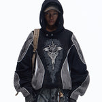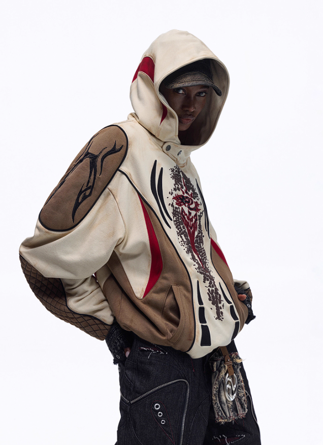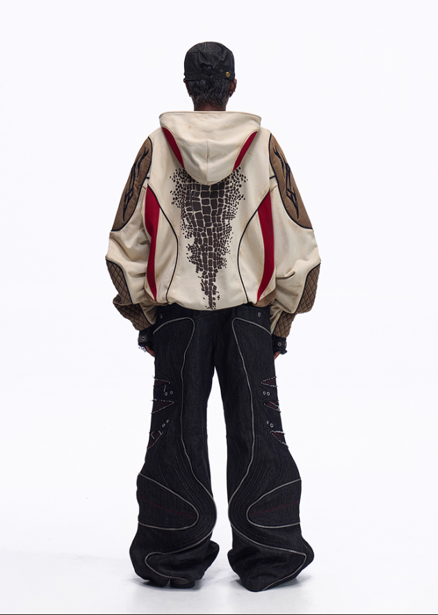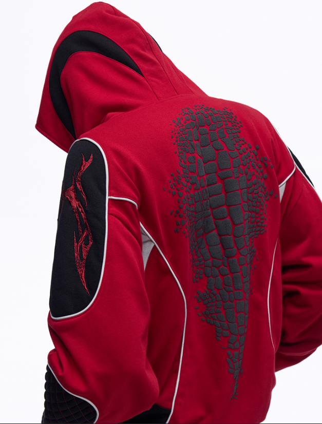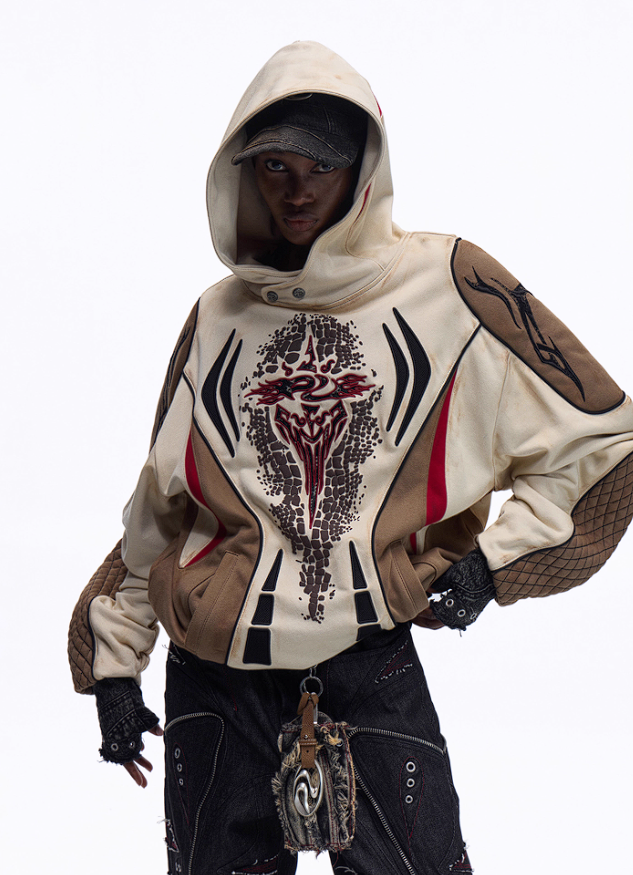Der Opium Racing Cobra Hoodie vereint luxuriöse Opium Aesthetic mit Racing-inspiriertem Design durch seine spektakuläre Multi-Color-Paneling-Konstruktion und mystisches Cobra-Motiv. Dieser Premium-Hoodie besteht aus 100% Baumwolle und besticht durch sein einzigartiges Racing-Stripe-Design mit kontrastierenden Farbblöcken, gesteppten Details und einem zentralen Cobra-Sword-Emblem mit Schlangenhaut-Textur. Die oversized Silhouette mit großer Kapuze, ergonomischen Ärmeln und Fronttaschen schafft die perfekte Verbindung zwischen Opium Fashion Glamour und Racing-Heritage – ideal für das moderne Statement-Outfit.