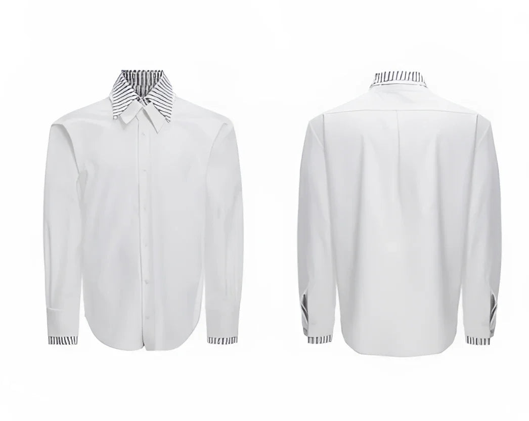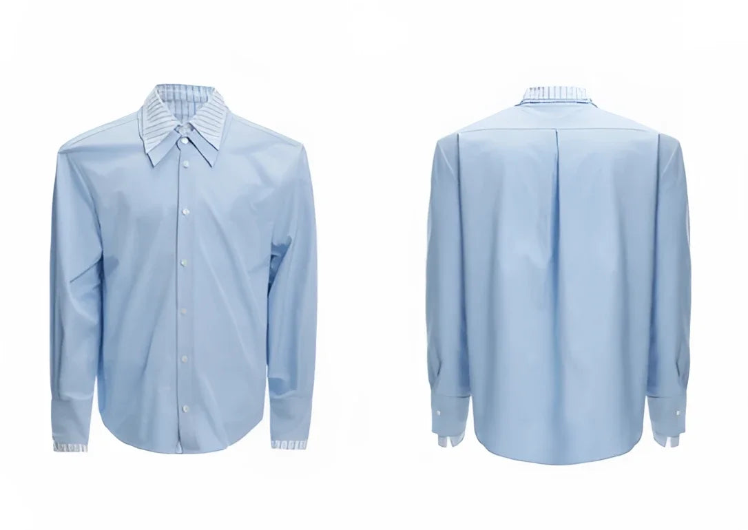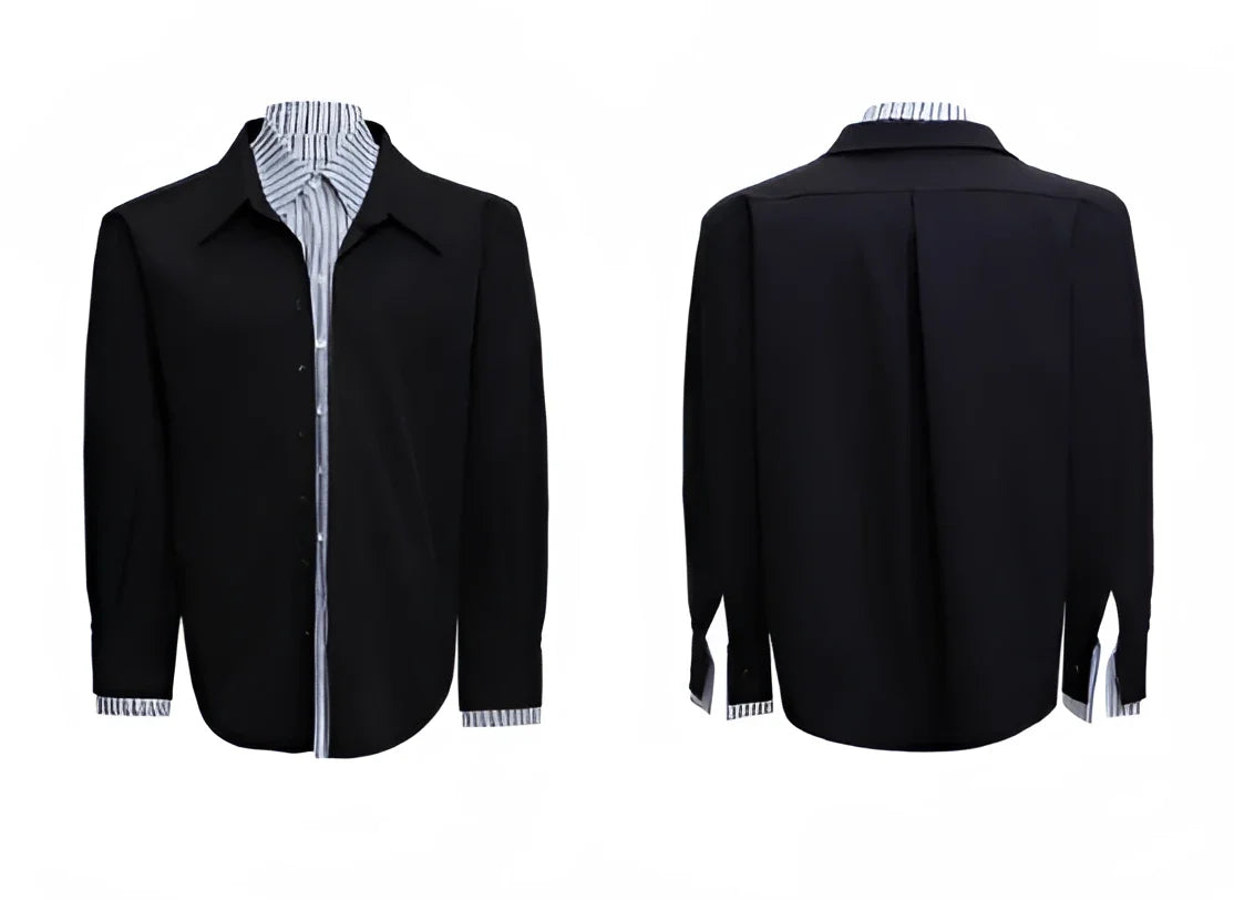 Kettős rétegű üzleti ingünk innovatív rétegezési technológiáján keresztül dekonstruálja a hagyományos irodai ruházatot, integrált csípős burkolatú. A túlméretezett sziluett a jellegzetes hüvely részleteivel és a látható belső struktúrával megtestesíti a Opium Divatmozgás- A formális kódok tudatos megfordítása az üzleti konvenciókat lázadó nyilatkozatokká alakítja.