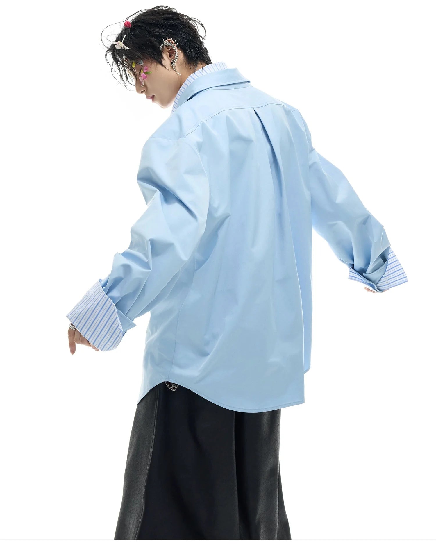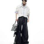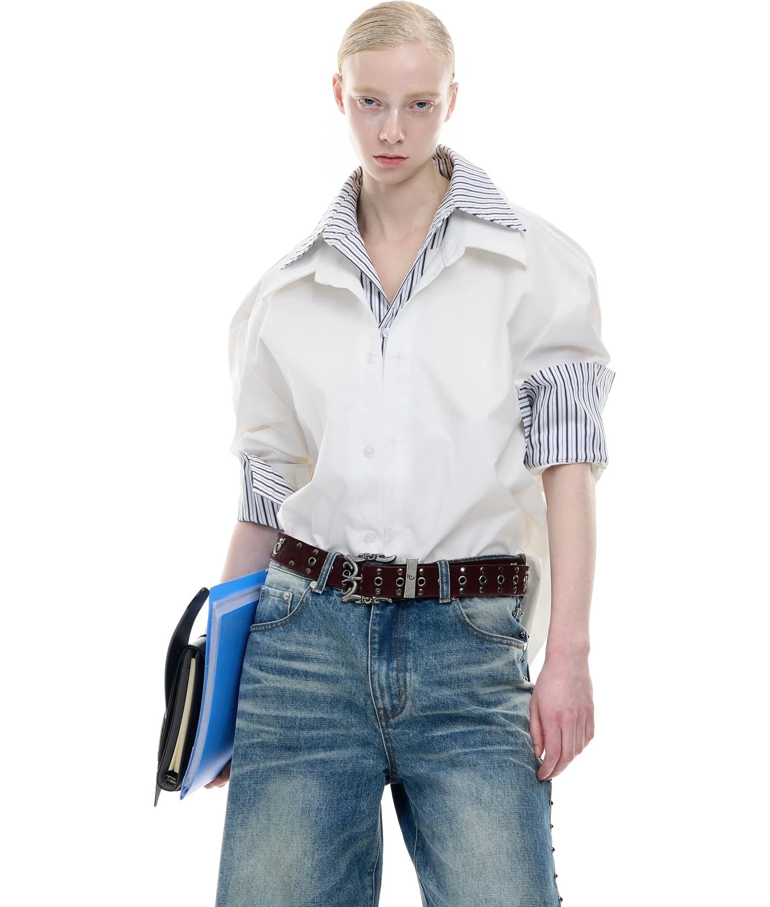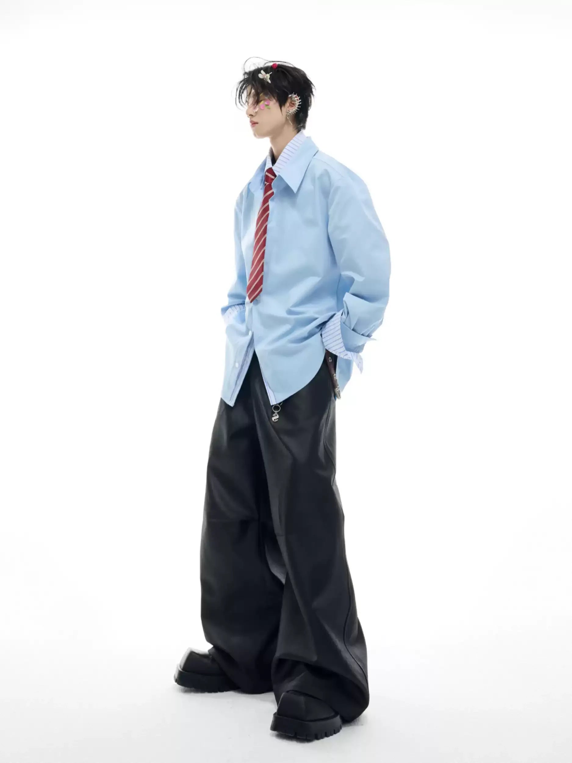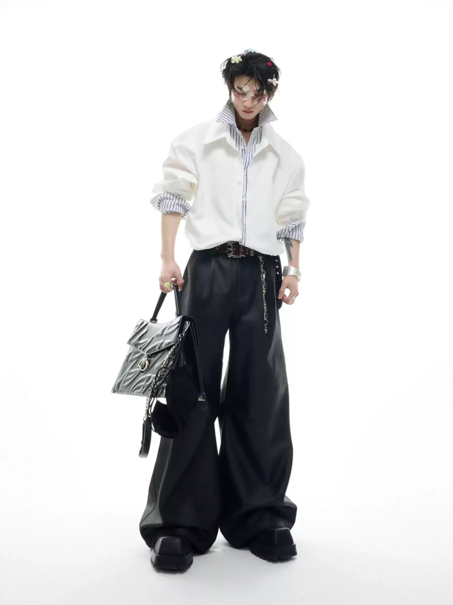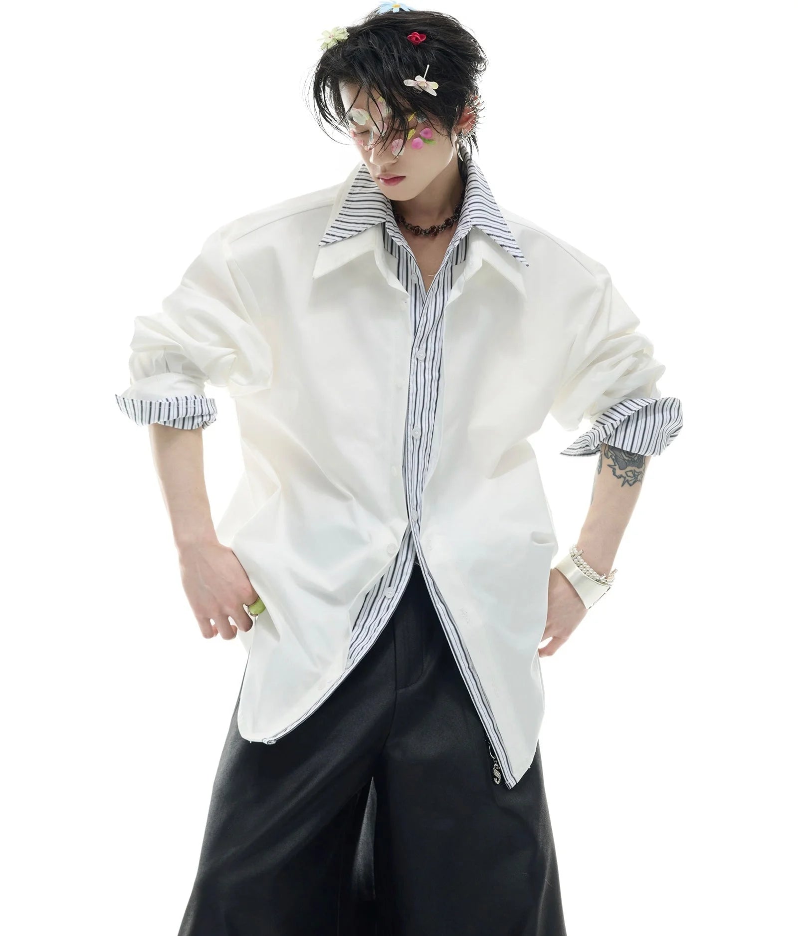 A kétrétegű üzleti ing tökéletes nyilatkozat a professzionális lázadáshoz. Kombinálja azt a miénkkel Széles körű üzleti nadrág A teljes vállalati felforgatáshoz vagy viselni Minimalista alapok Kísérleti irodai rétegezéshez. A pinstripe részletei tökéletesen harmonizálnak Üzleti kibővítő kiegészítők és a lánc részletei.
