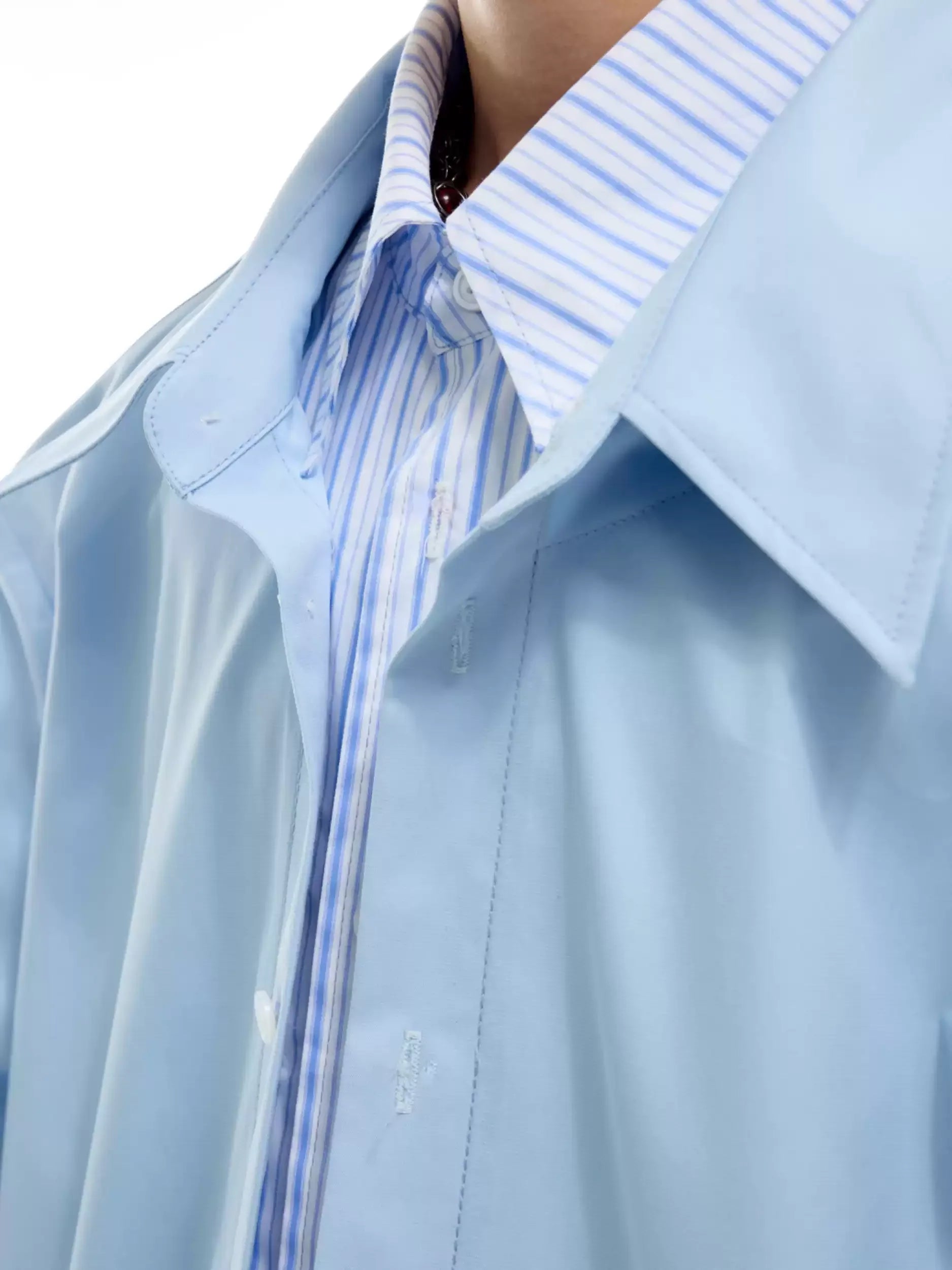 A Opium A kettős rétegű üzleti ing forradalmasítja a klasszikus irodai ruházatot, annak innovatív kettős rétegű konstrukciójának köszönhetően, amely 100% prémium pamutból készül. A hagyományos üzleti ingnek a jellegzetes pinstripe belső burkolatával és a túlméretezett vágással történő avantgárd-garde értelmezése a tökéletességben lázadó eleganciát testesít meg. A formális esztétika és a dekonstruált utcai támadás egyesülése új dimenzióval teremti a szakmai lázadás a modern nem-konformisták számára a vállalati környezetben.