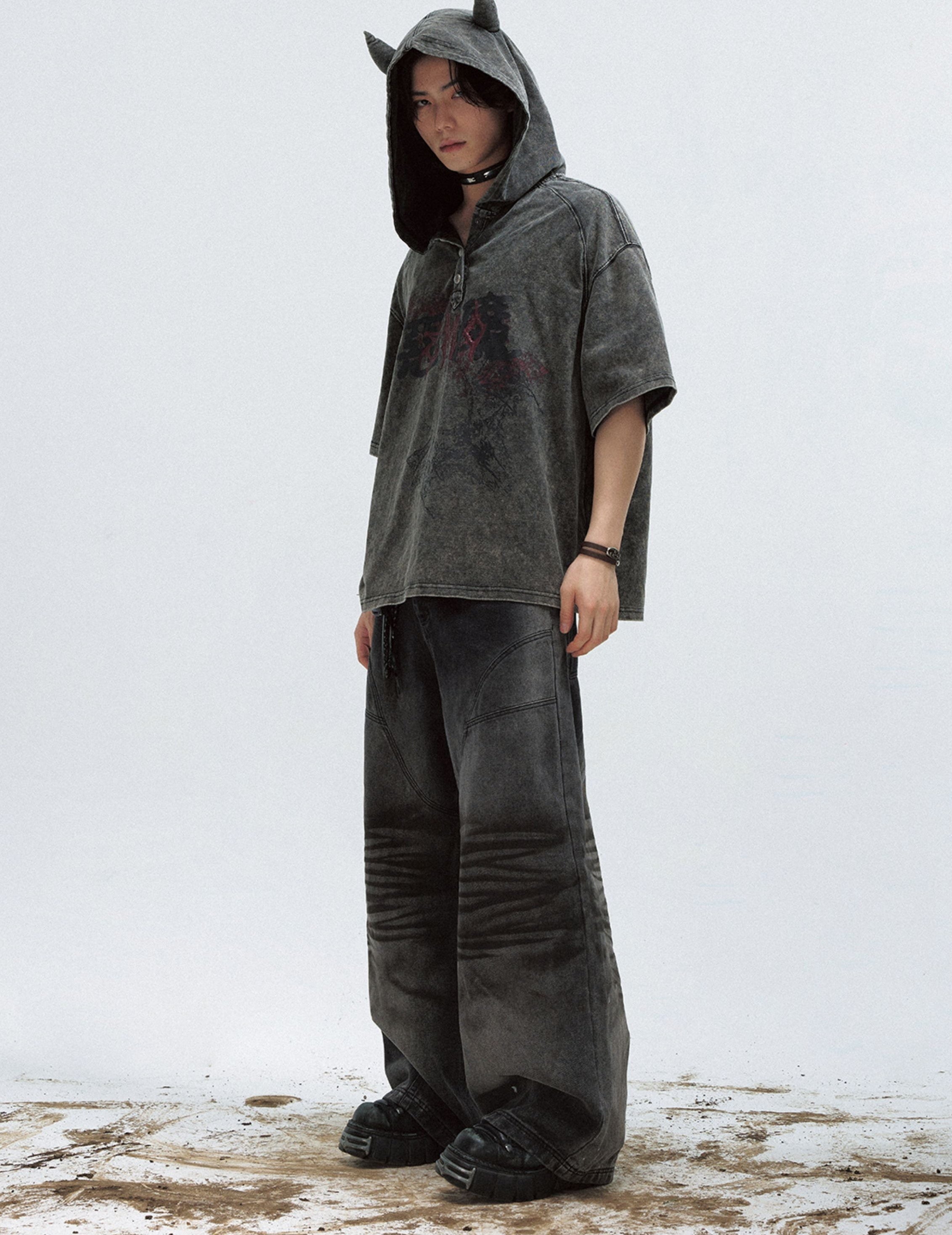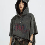 Unser Horn-Hoodie verkörpert die perfekte Fusion von Gothic-Elementen und zeitgenössischer Streetwear. Die markanten Teufels-Hörner auf der Kapuze schaffen einen unverwechselbaren Look, während die mystischen Symbole auf Brust und Rücken dem Design zusätzliche Tiefe verleihen. Der Oversized-Schnitt mit verkürzten Ärmeln ermöglicht vielseitige Layering-Optionen. Entdecke unsere komplette Gothic-Kollektion für weitere darkwear Essentials.