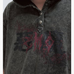 Der Gothic Darkwear Hoodie mit charakteristischen Teufels-Hörnern vereint düstere Ästhetik mit urbaner Streetwear-Funktionalität. Dieser außergewöhnliche Oversized-Hoodie besticht durch sein einzigartiges Hood-Design mit aufgesetzten Hörnern und mystischen Druck-Motiven auf Vorder- und Rückseite. Die hochwertige Baumwoll-Konstruktion mit Vintage-Waschung verleiht dem Piece einen authentischen, gelebten Look für deine alternative Garderobe.