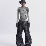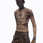 Das Opium Grunge Print Longsleeve Top vereint dark aesthetic mit grunge-inspiriertem Artwork durch sein spektakuläres All-Over-Print-Design und body-hugging Silhouette. Dieses Premium-Longsleeve besteht aus 100% Baumwolle und besticht durch sein einzigartiges mystisches Artwork mit Sonnen-Symbolen, organischen Texturen und vintage Distressed-Effekten. Die figurbetonende Passform mit Rundhalsausschnitt und gerippter Struktur schafft die perfekte Verbindung zwischen Opium Fashion und Y2K Grunge-Ästhetik – ideal für das moderne Dark Alternative Statement.