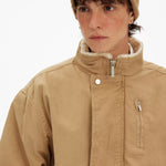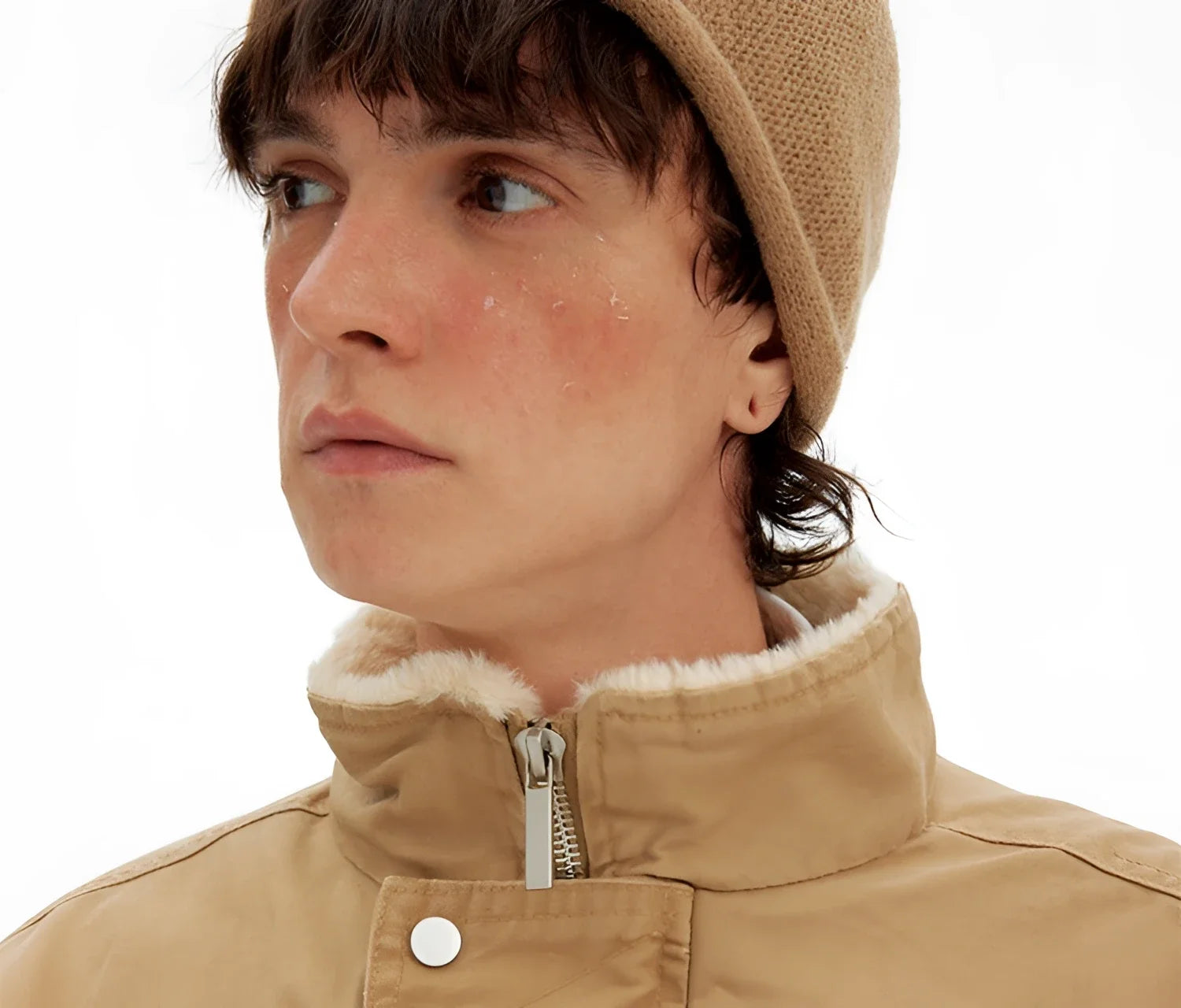 シェルパカラー ボンバー ジャケットは、ワークウェアの伝統と現代性を組み合わせたものです。 おじいちゃんの美学。豪華なシェルパの襟がジャケットに独特の質感を与え、リブ編みの袖口と裾を備えたクラシックなボンバーシルエットが完璧なフィット感を保証します。ジッパー付きの非対称の胸ポケットと隠れた前立てが、このプレミアム ジャケットの細部への技術的なこだわりを強調しています。