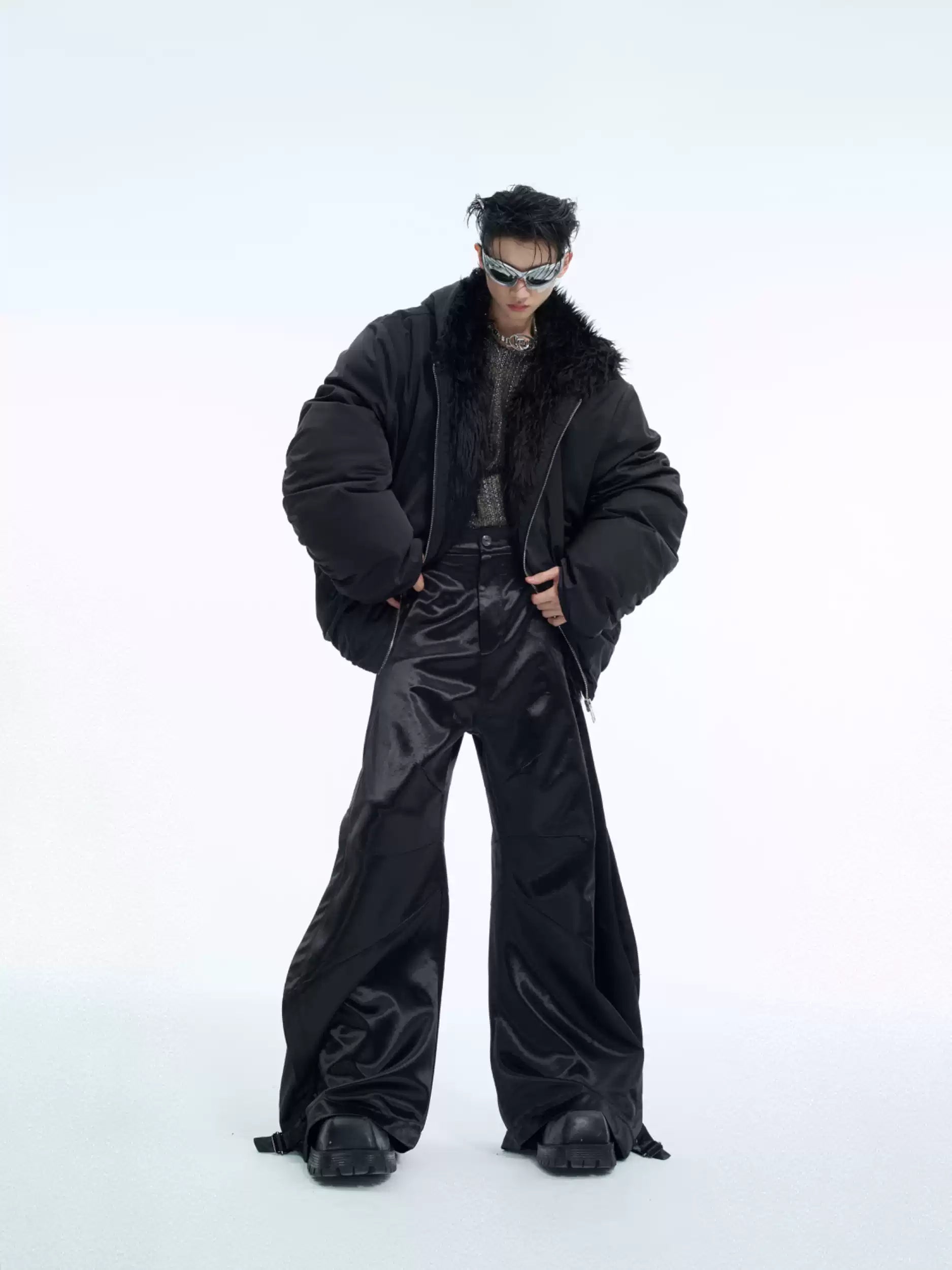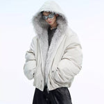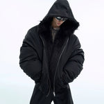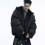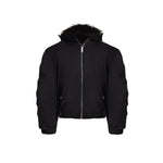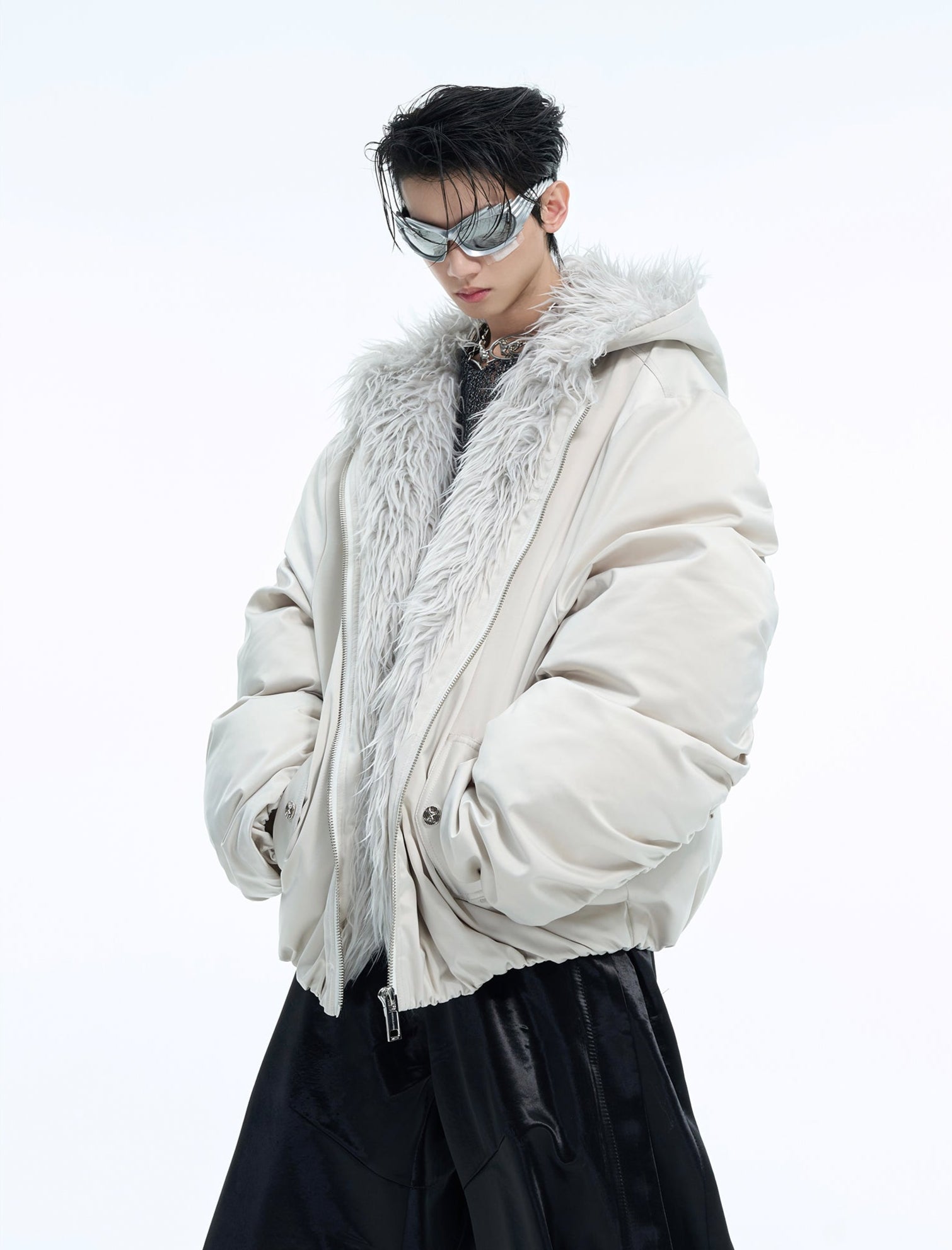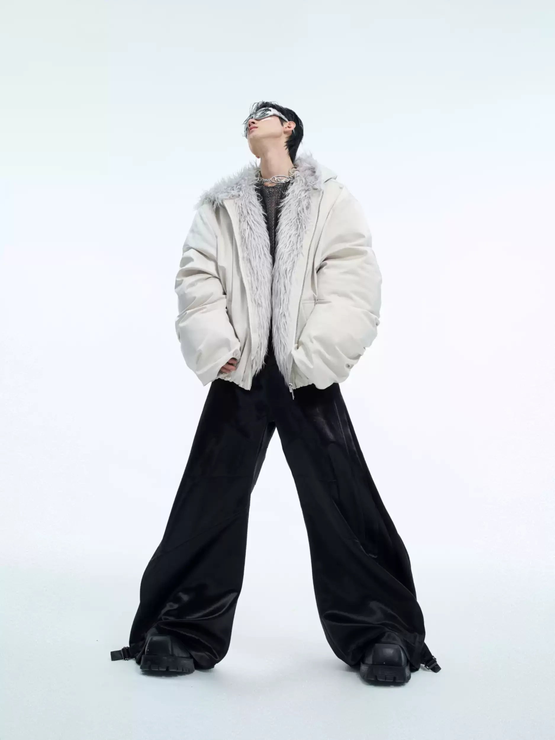 Unsere Faux Fur Puffer Jacket repräsentiert die Evolution luxuriöser Streetwear durch ihre spektakuläre Kombination aus voluminöser Silhouette und edlen Kunstfell-Akzenten. Der großzügige Faux-Fur-Kragen fungiert als dramatisches Statement-Element, während die Oversized-Passform charakteristisch für die Opium Fashion Philosophie ist. Die hochwertige Puffer-Konstruktion garantiert sowohl Wärme als auch unvergleichlichen Style-Faktor.