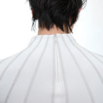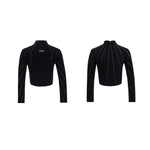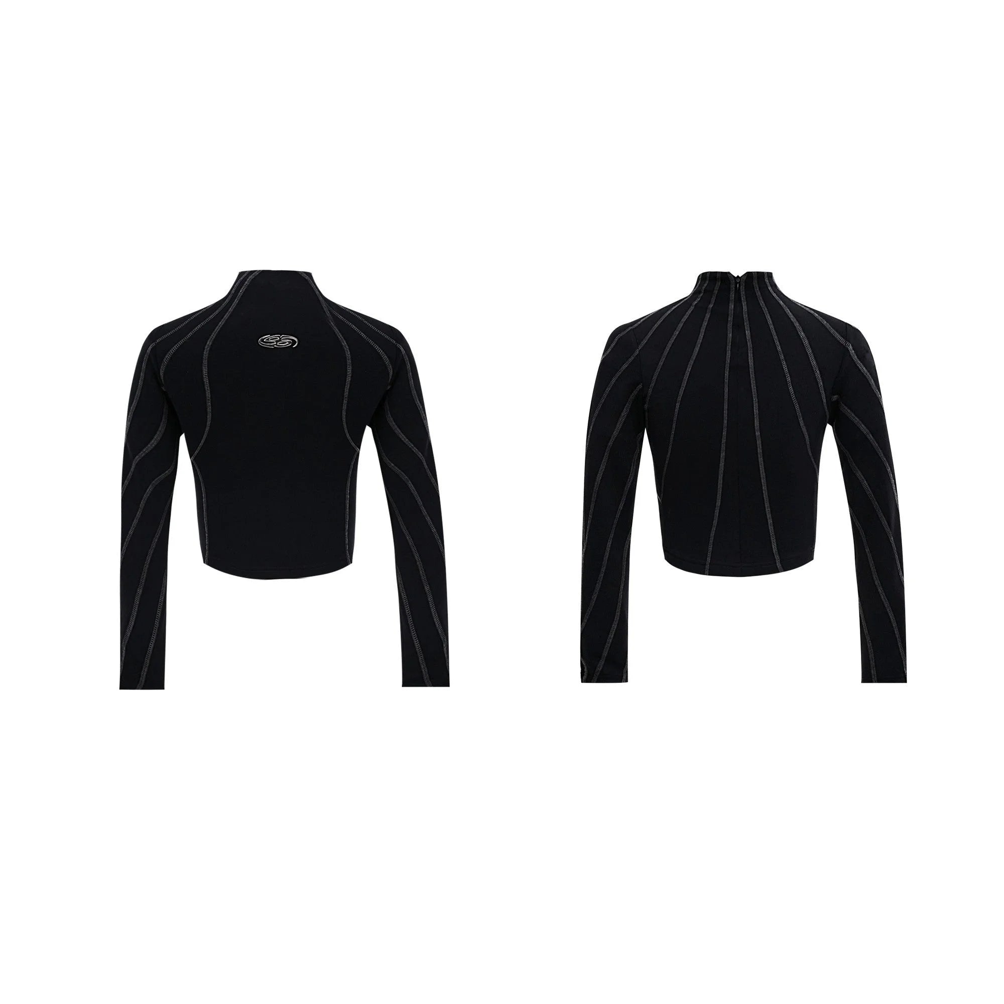 Das Opium Metal Ring Longsleeve revolutioniert minimalistisches Design durch sein charakteristisches Metallring-Detail und die präzisen Ziernähte. Dieses futuristische Oberteil aus einer hochwertigen Polyester-Viskose-Spandex-Mischung vereint technische Performance mit avantgardistischer Ästhetik. Die körpernahe Passform und das ikonische Metallemblem machen es zum perfekten Statement-Piece für die moderne Alternative Fashion.