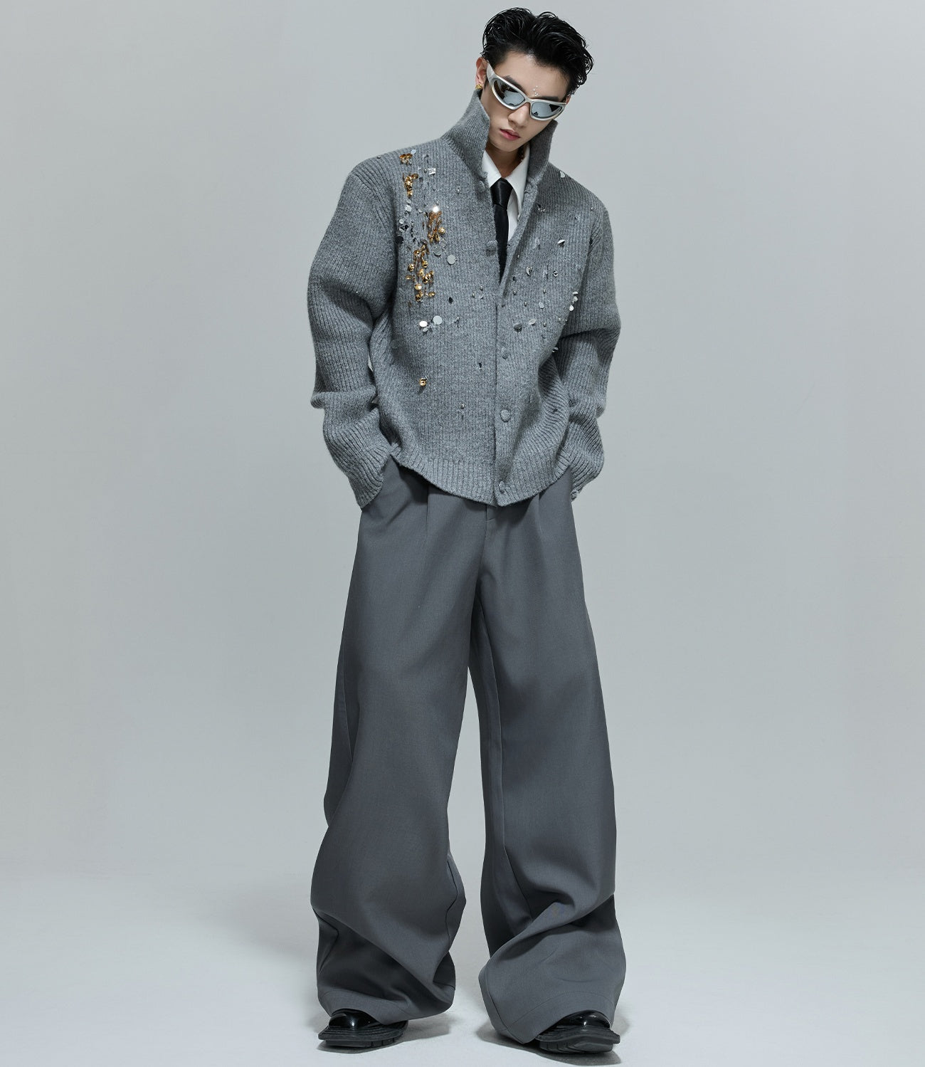 Kombiniere deinen Sequin Embellished Cardigan mit unseren Opium Hosen für ein komplettes luxuriöses Dark Aesthetic Outfit. Die verkürzte Silhouette harmoniert perfekt mit weiten Anzughosen oder Baggy Jeans für einen sophistizierten Opium Style. Für einen formellen Look trage ihn über Hemd und Krawatte, für Casual-Styling direkt auf der Haut. Ergänze dein Outfit mit passenden Opium Accessoires wie futuristischen Y2K-Sonnenbrillen. Für einen kompletten Opium Fashion Look empfehlen wir die Kombination mit unseren Opium Jacken im Layering-Style. Erfahre mehr über den Stil in unserem Guide How to Dress Opium.
