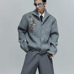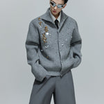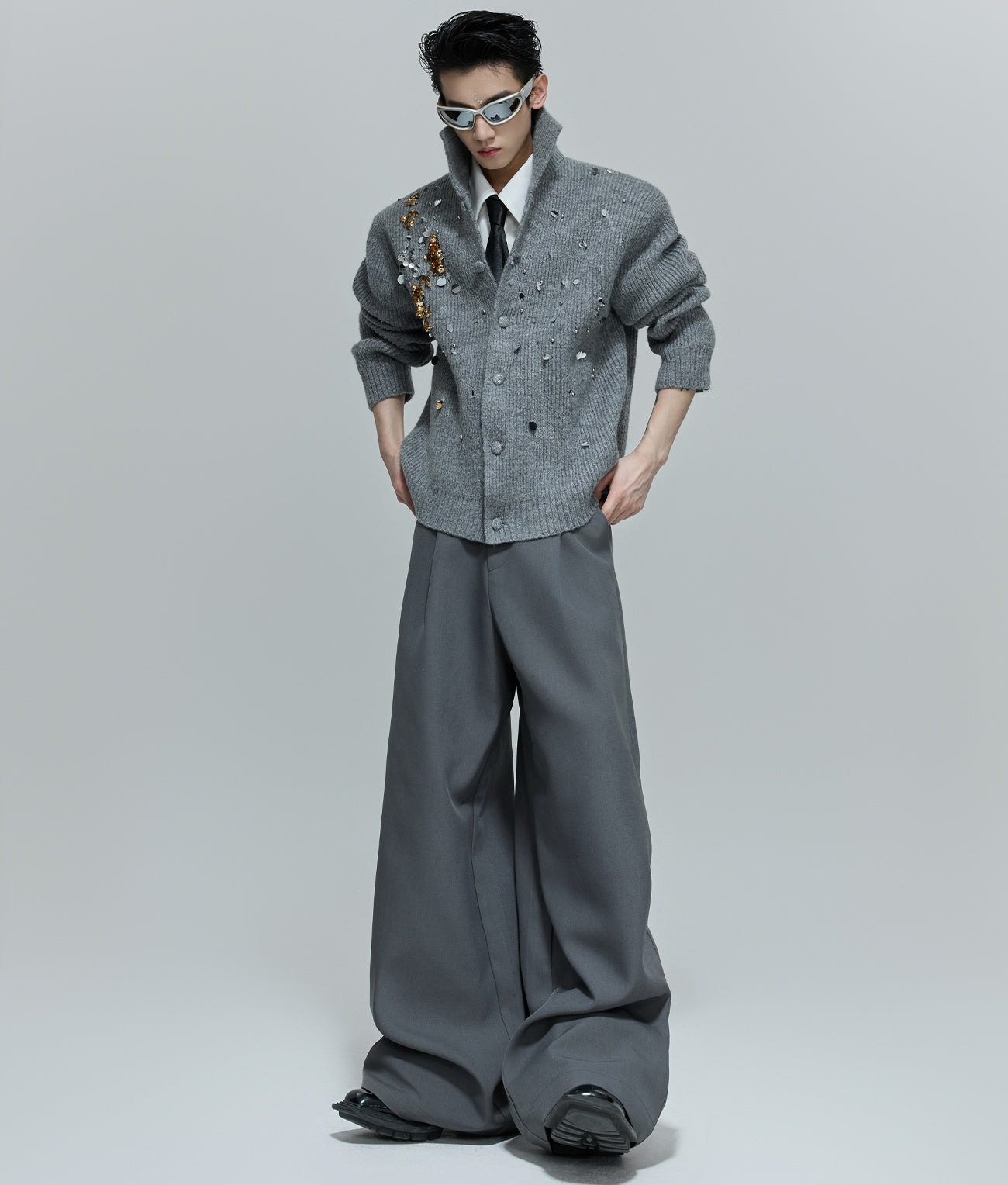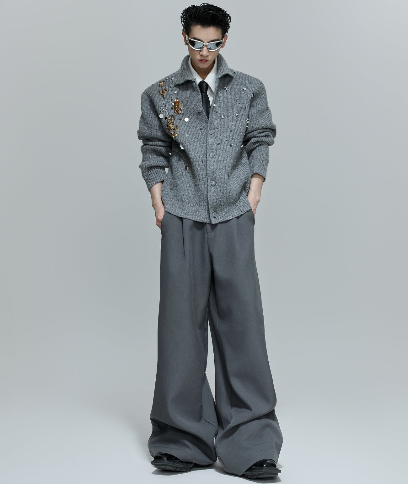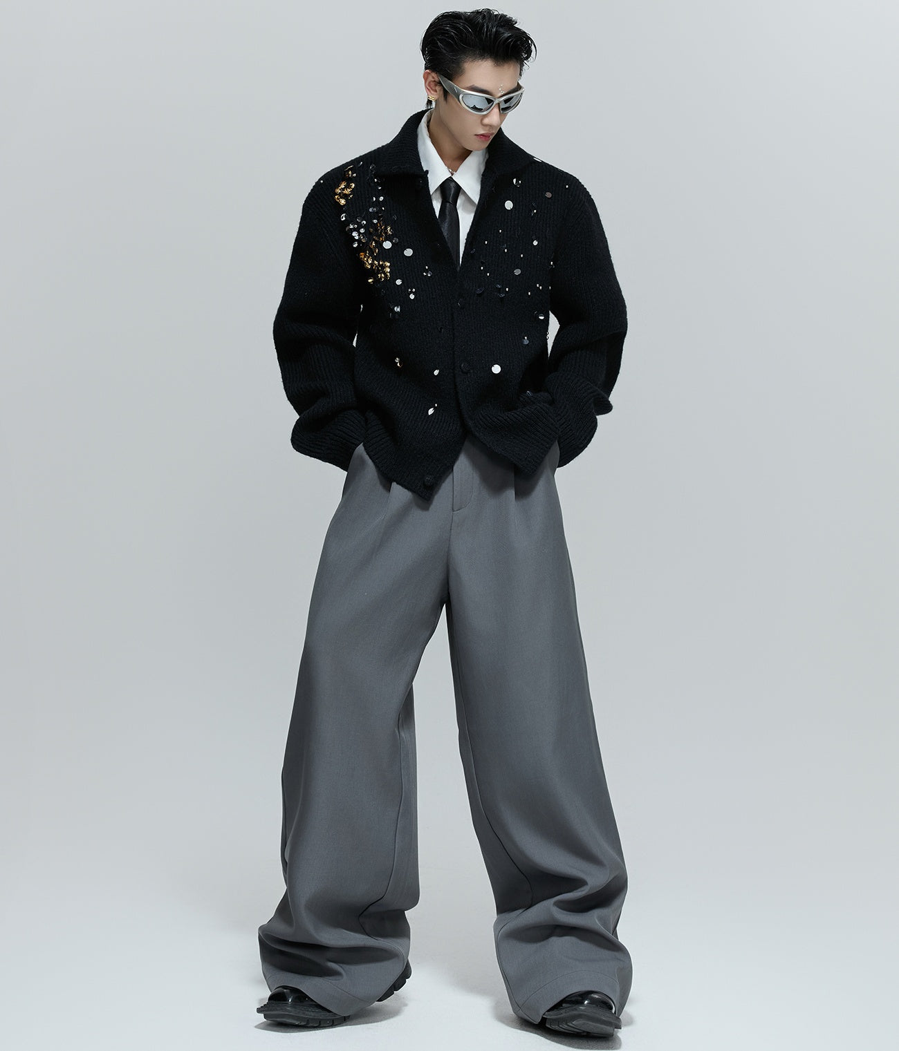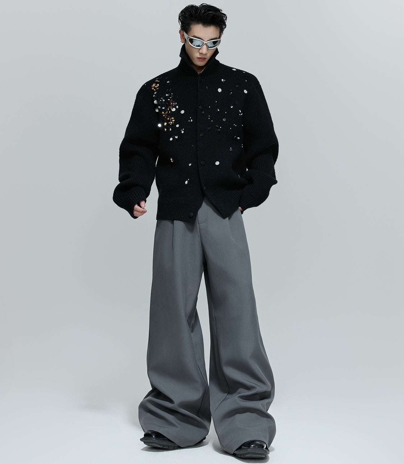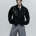 Der Opium Sequin Embellished Cardigan vereint luxuriöse Handwerkskunst mit zeitgenössischer Opium Aesthetic durch seine exquisite Pailletten-Verzierung und hochwertige Wollmischung. Diese Premium-Strickjacke besticht durch ihr einzigartiges asymmetrisches Pailletten-Design mit Gold- und Silber-Akzenten auf schwarzem oder grauem Grund. Die oversized Silhouette mit Reverskragen und Knopfleiste schafft eine elegante Verbindung zwischen gothic Glamour und urbaner Sophistication – perfekt für das moderne Opium Fashion Statement.