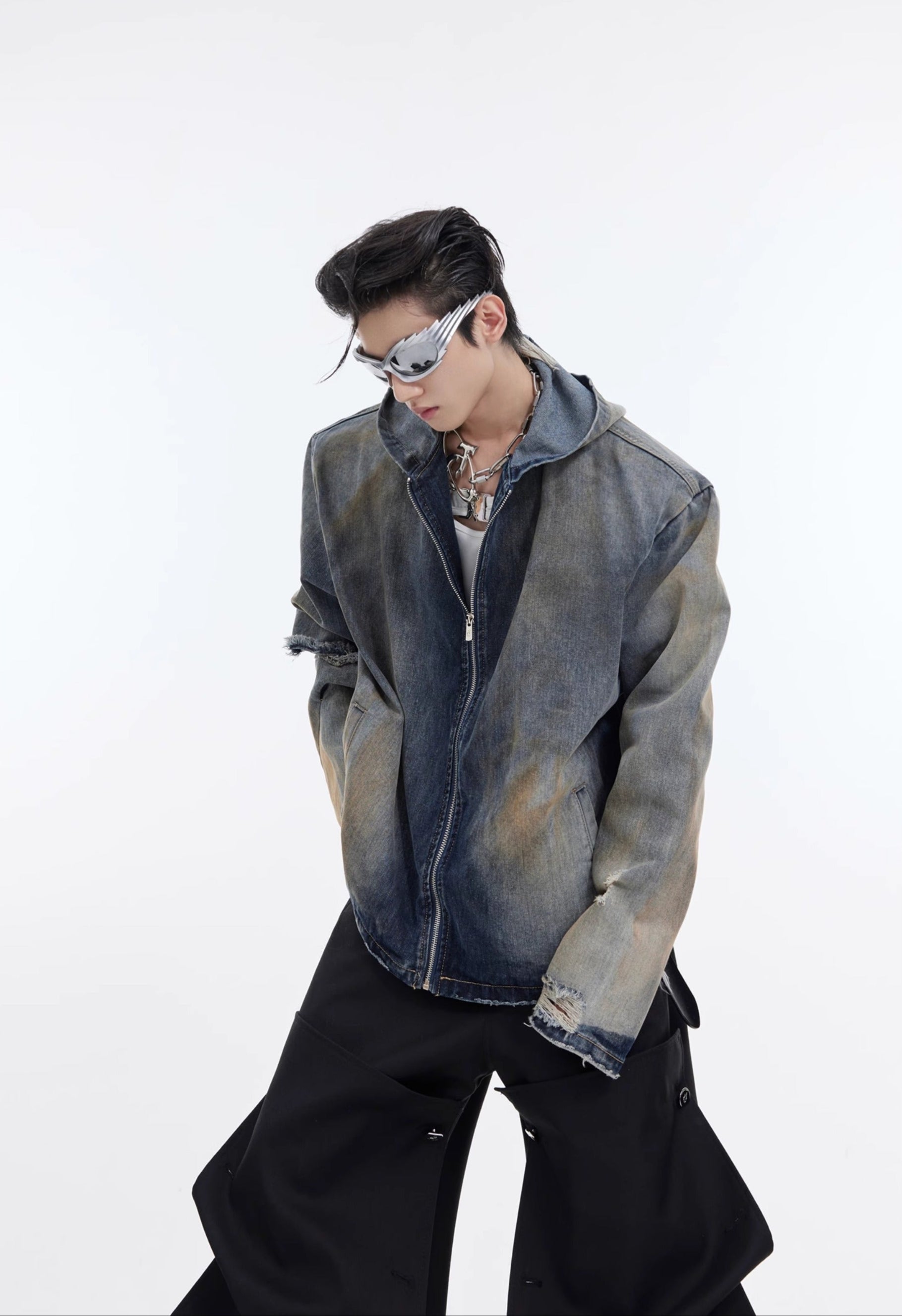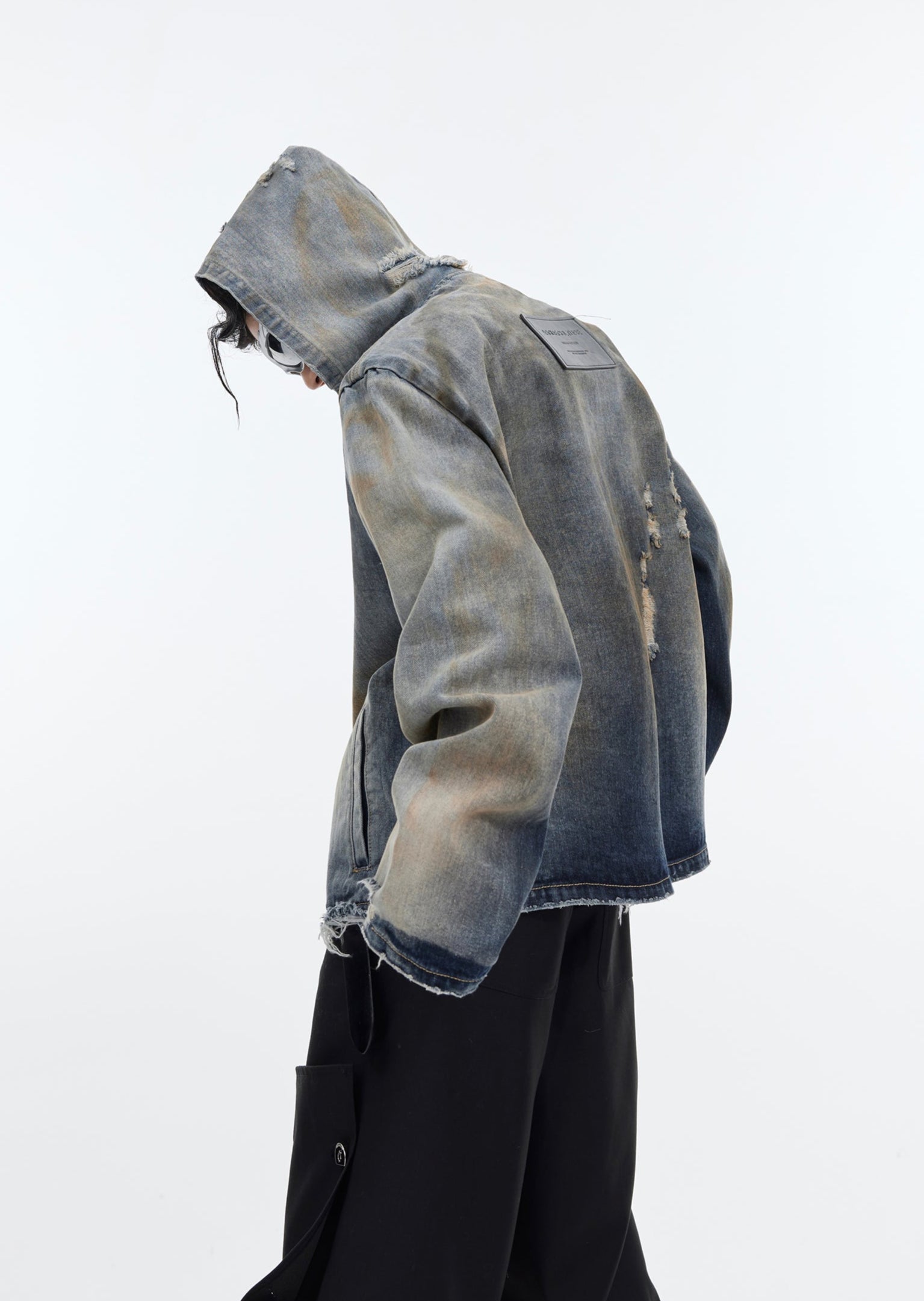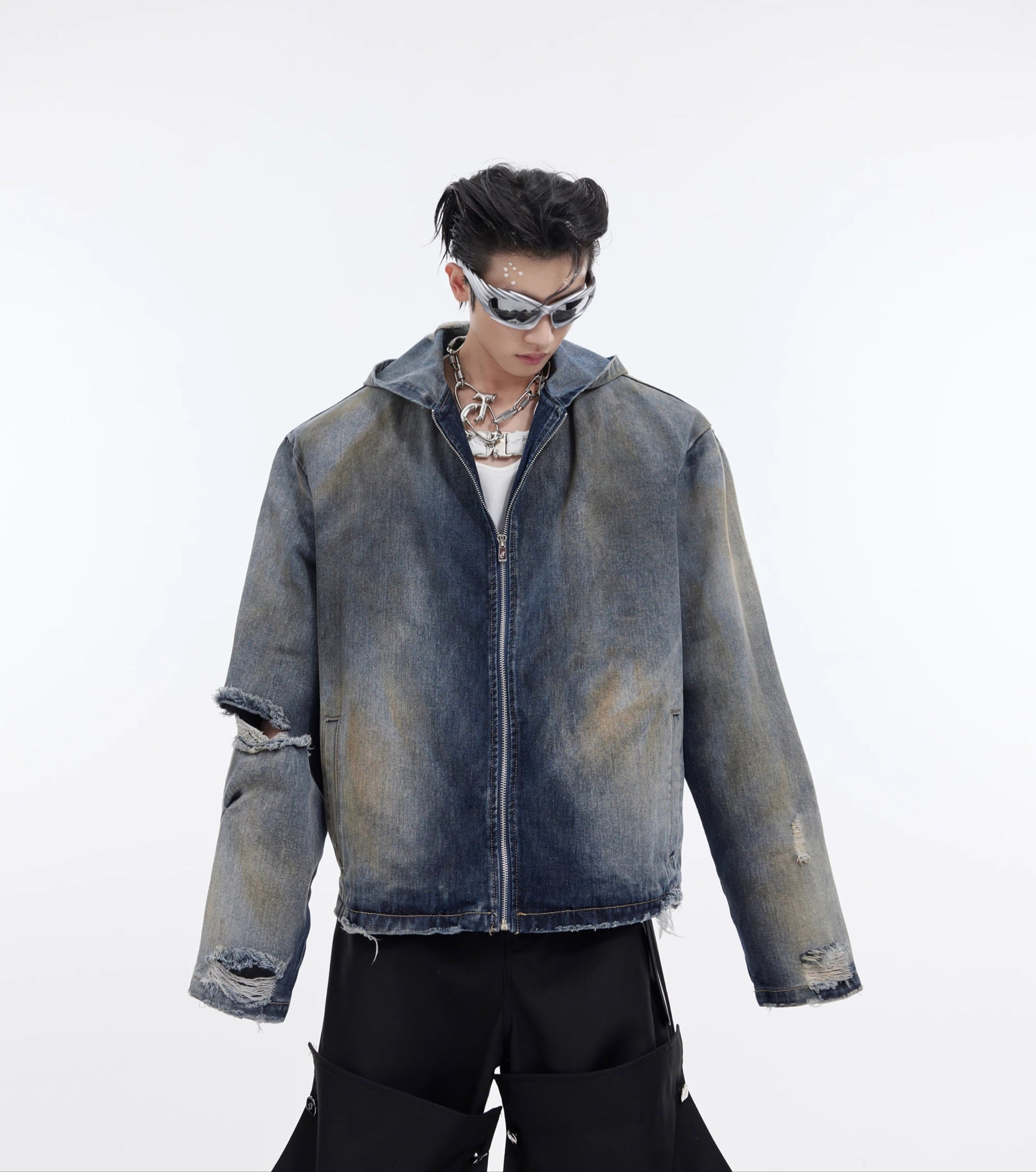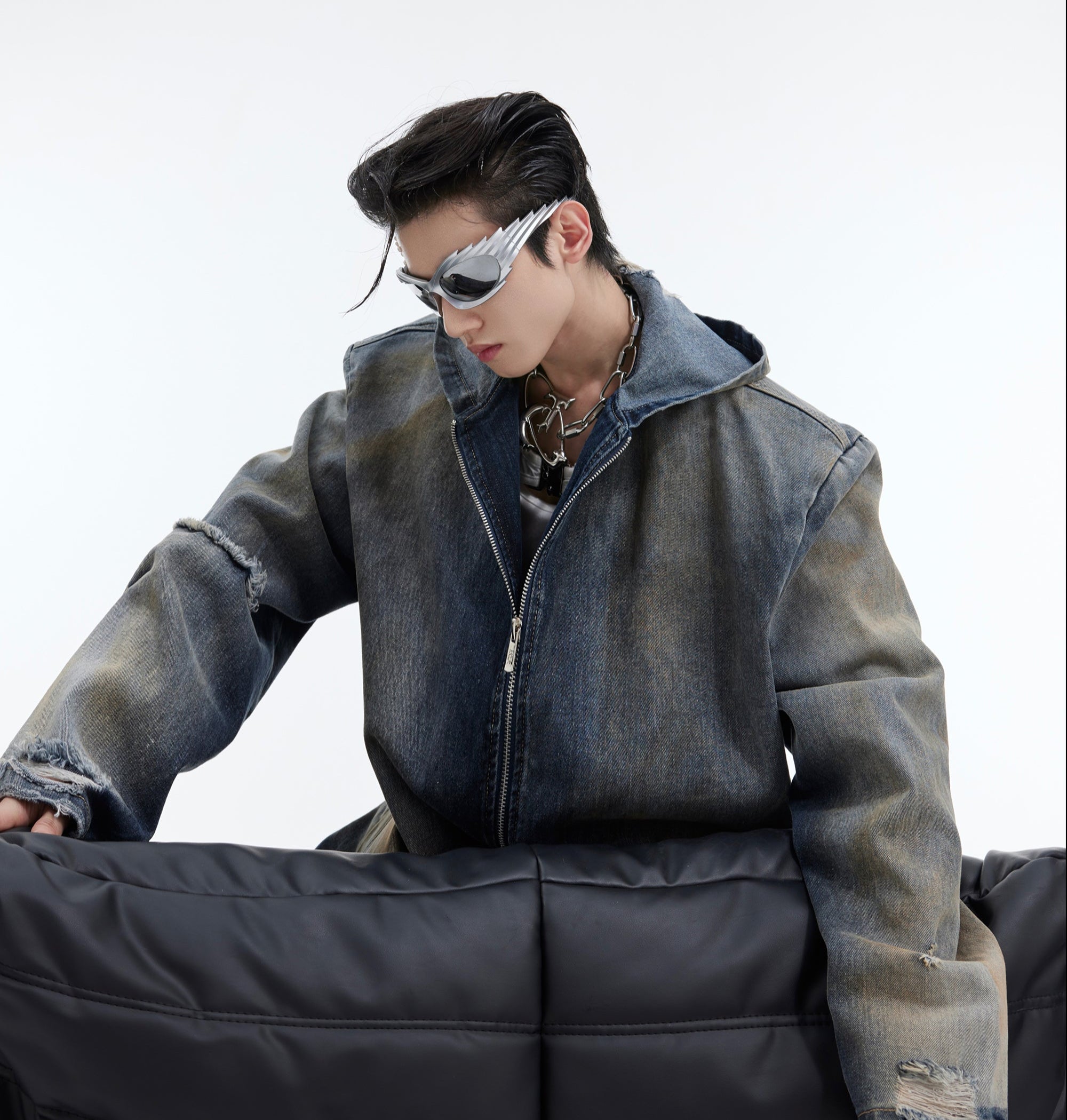 Unsere Vintage Denim Jacket repräsentiert die Evolution rebellischer Streetwear durch ihre authentischen Distressed-Elemente und architektonischen Schnitt. Die charakteristischen Risse und Fransen entstehen durch spezielle Veredelungsverfahren, die jedes Stück zu einem Unikat machen. Das ikonische schwarze Label auf der Rückseite fungiert als subtiles Markenzeichen und unterstreicht die Zugehörigkeit zur exklusiven Opium Fashion Familie.