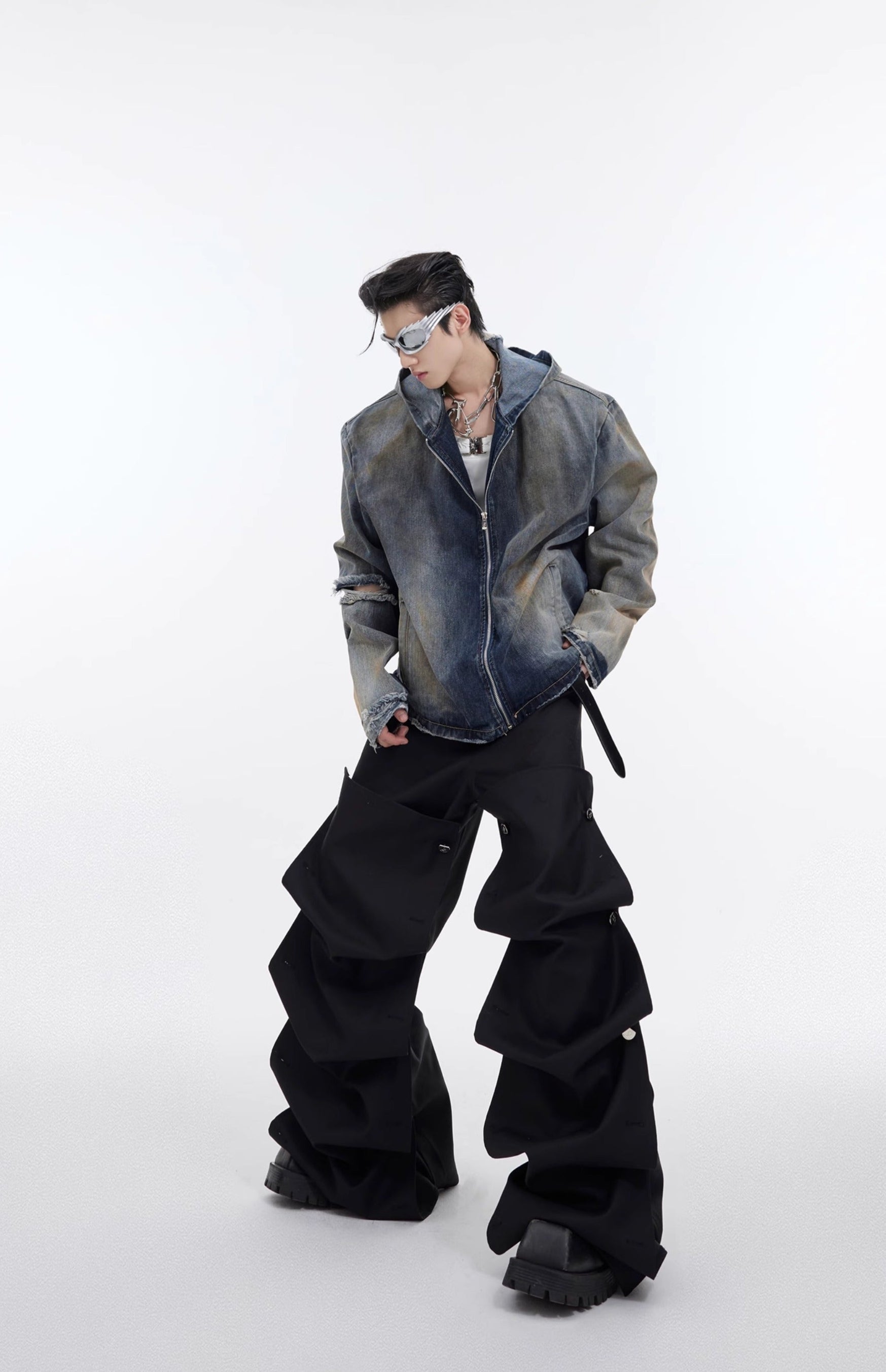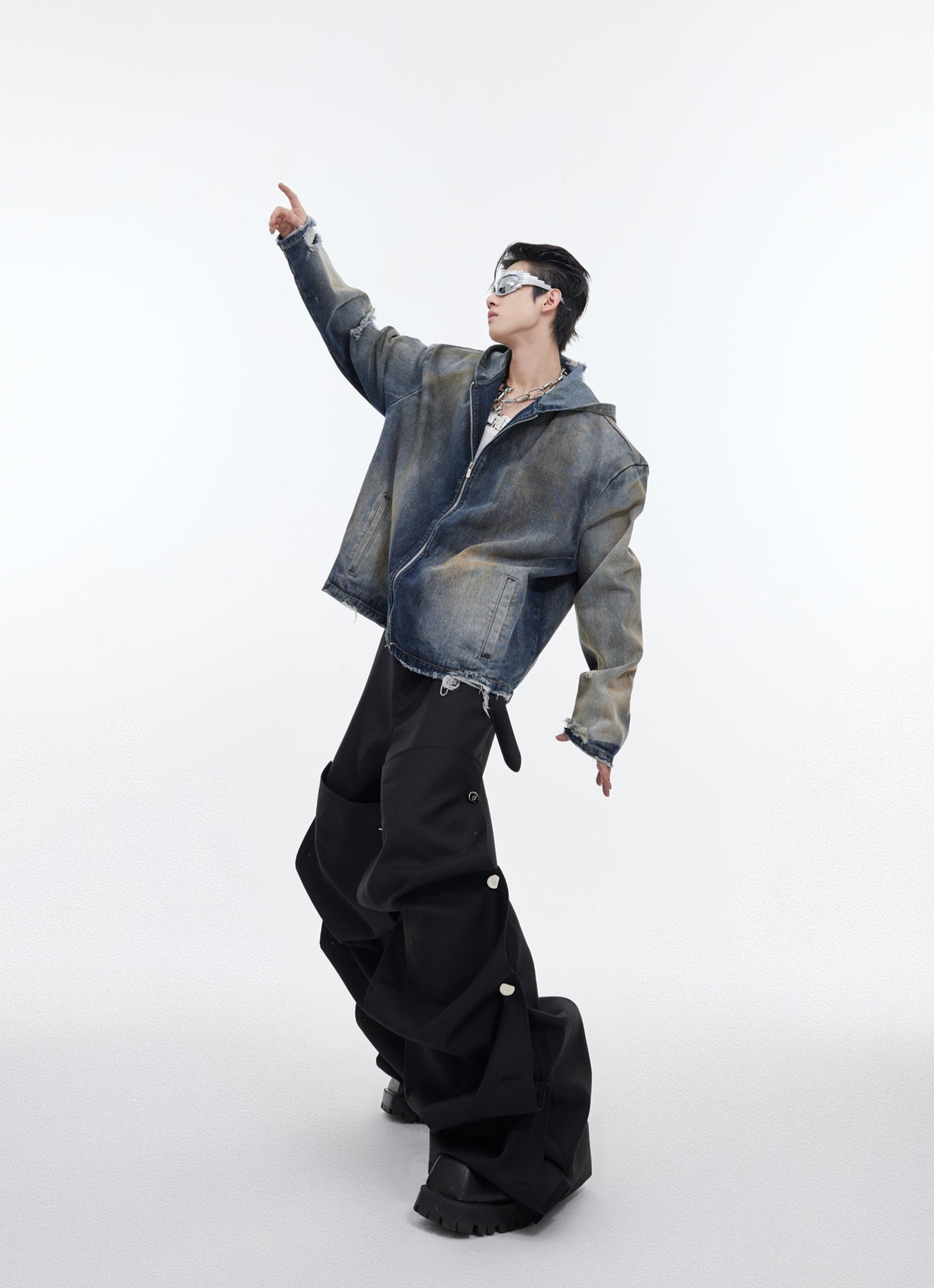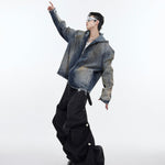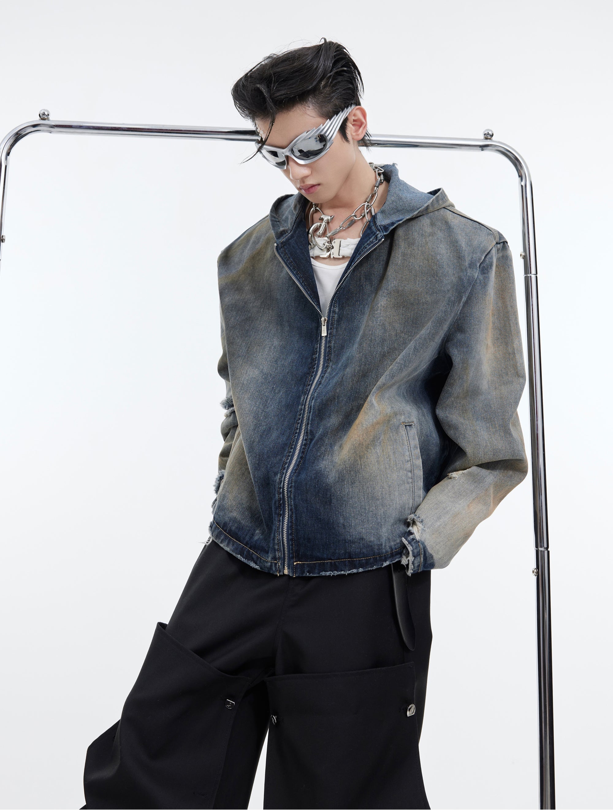 Unsere Vintage Denim Jacket repräsentiert die Evolution rebellischer Streetwear durch ihre authentischen Distressed-Elemente und architektonischen Schnitt. Die charakteristischen Risse und Fransen entstehen durch spezielle Veredelungsverfahren, die jedes Stück zu einem Unikat machen. Das ikonische schwarze Label auf der Rückseite fungiert als subtiles Markenzeichen und unterstreicht die Zugehörigkeit zur exklusiven Opium Fashion Familie.