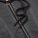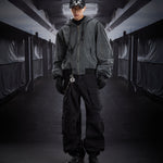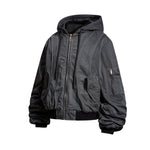 Unsere Hooded Bomber Jacket definiert urbane Techwear durch ihre innovative Material-Kombination und funktionale Konstruktion neu. Der charakteristische washed Denim-Body in Charcoal Grey kontrastiert dramatisch mit den tiefschwwarzen Ärmeln und schafft einen einzigartigen Two-Tone-Effekt. Die integrierte Kapuze mit verstellbaren Kordelzügen bietet zusätzlichen Schutz, während die klassischen gerippten Bündchen an Ärmeln und Saum für optimale Passform sorgen. Multiple Utility-Taschen mit Reißverschluss- und Druckknopf-Verschlüssen bieten praktischen Stauraum. Die Oversized-Passform ermöglicht vielseitige Layering-Optionen. Entdecke unsere komplette Techwear-Kollektion für weitere technische Jacken.