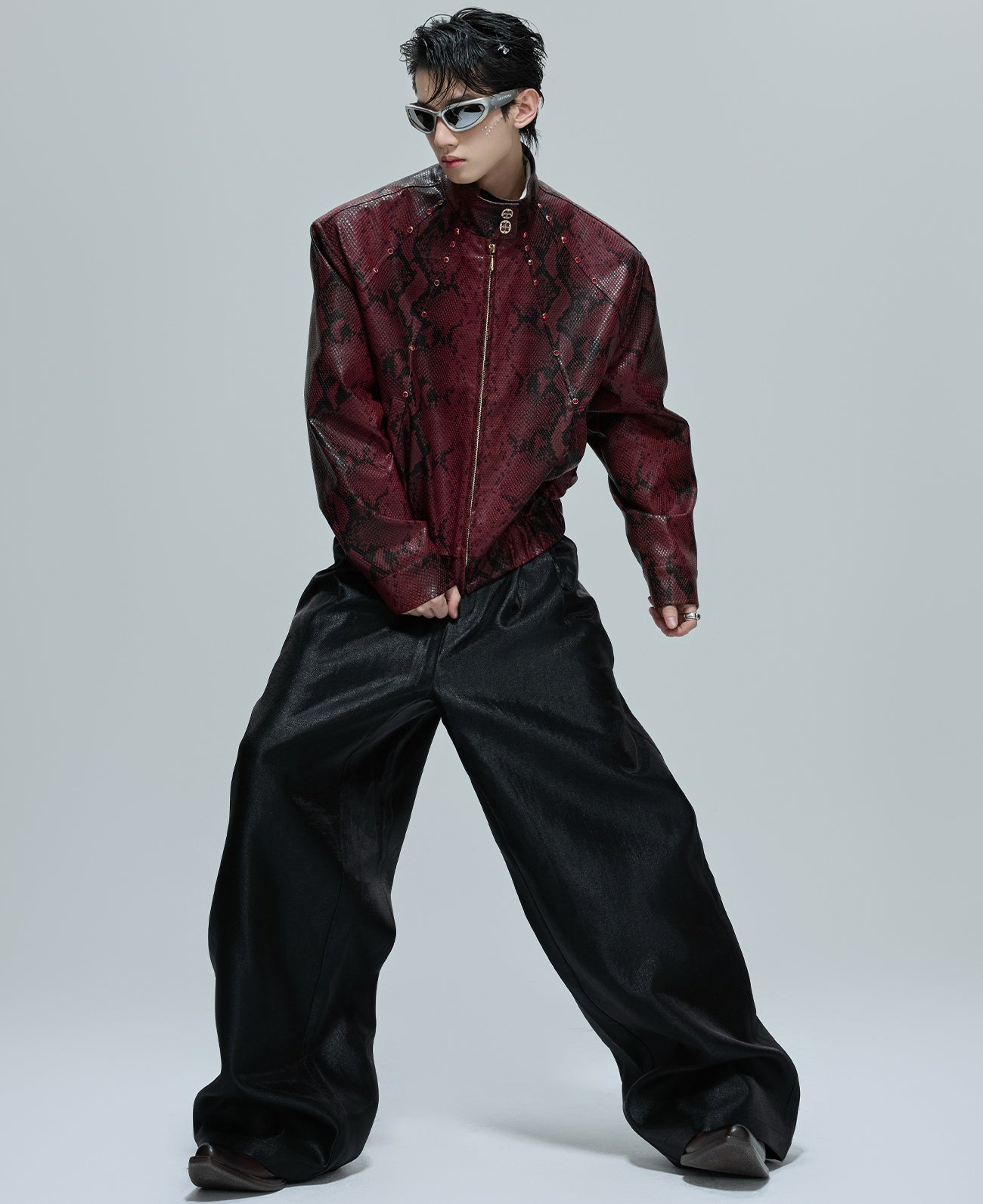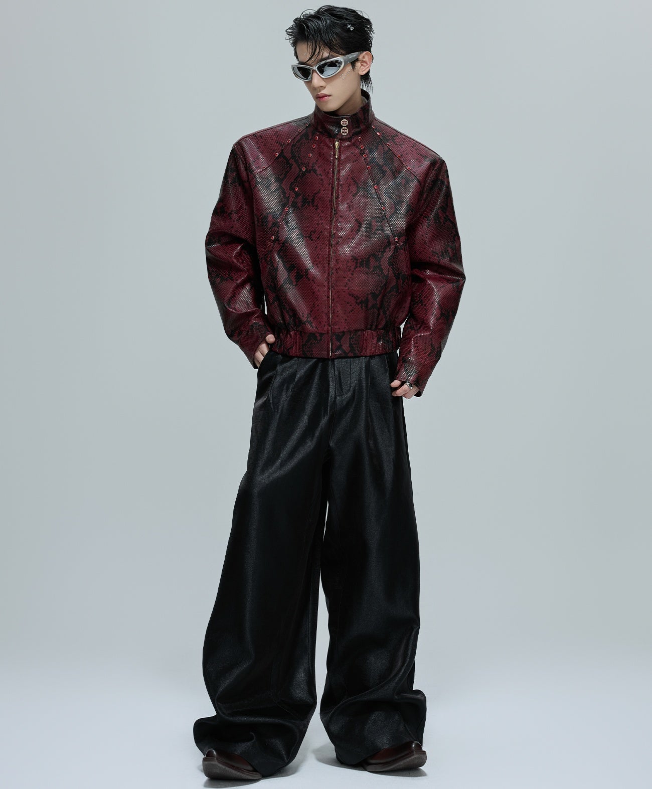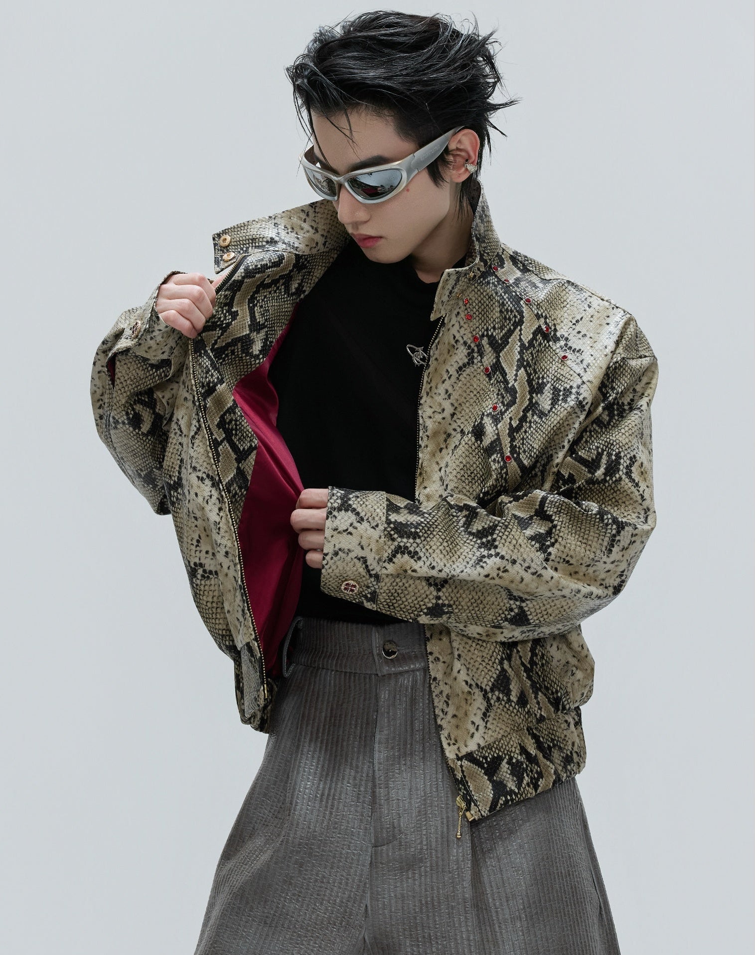 O Opium Snakeskin Studded Bomber incorpora a escuridão luxuosa do Opium Estética graças ao seu impressionante design com estampa de cobra e aplicações de rebites estrategicamente posicionadas. Esta jaqueta bomber premium combina um visual de couro exótico com funcionalidade urbana urbana e impressiona com seu corte curto e construção característica de gola alta. Disponível em duas cores marcantes – preto clássico e vermelho bordô luxuoso – este bombardeiro atinge o equilíbrio perfeito entre a elegância gótica e o estilo de rua contemporâneo.