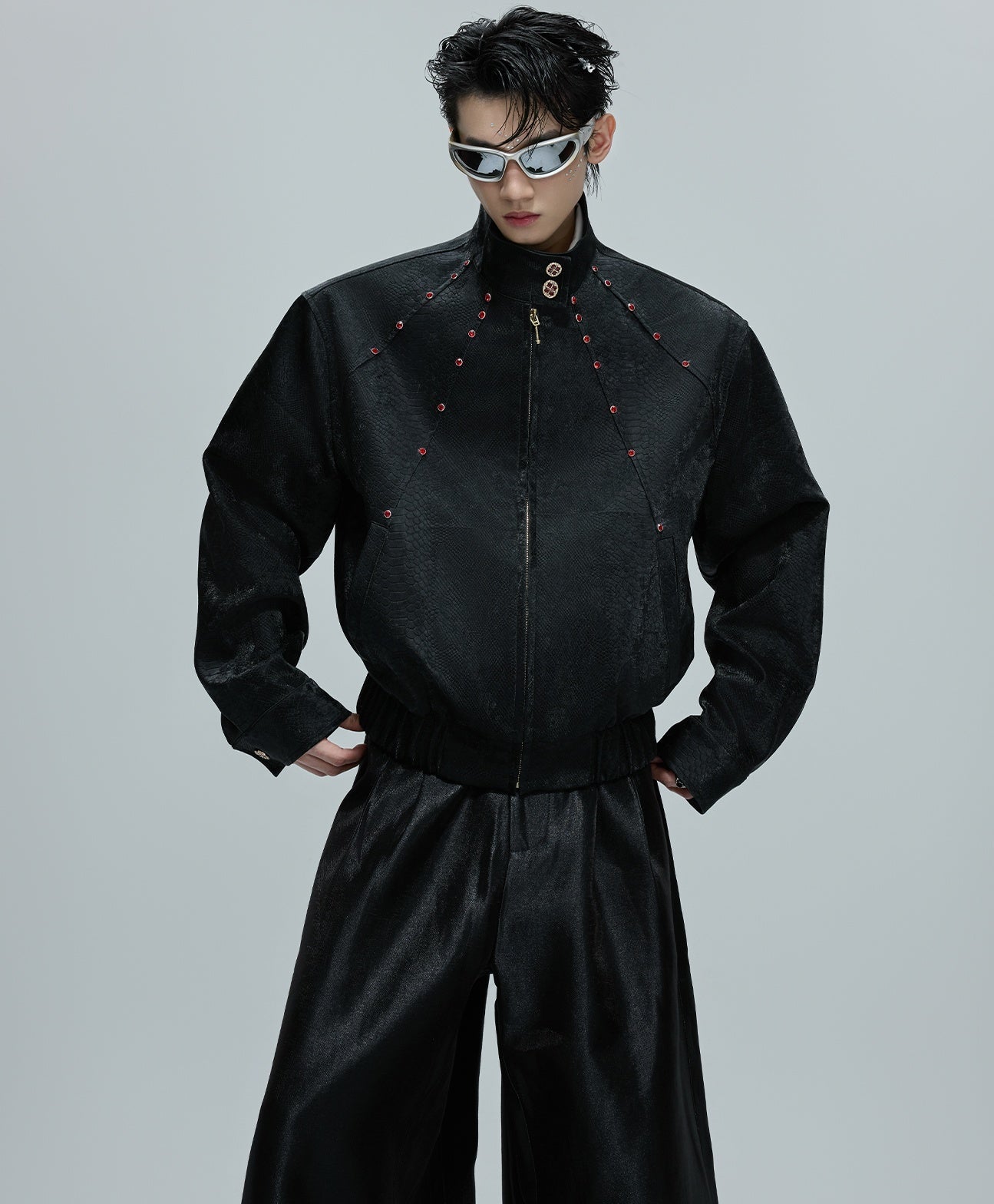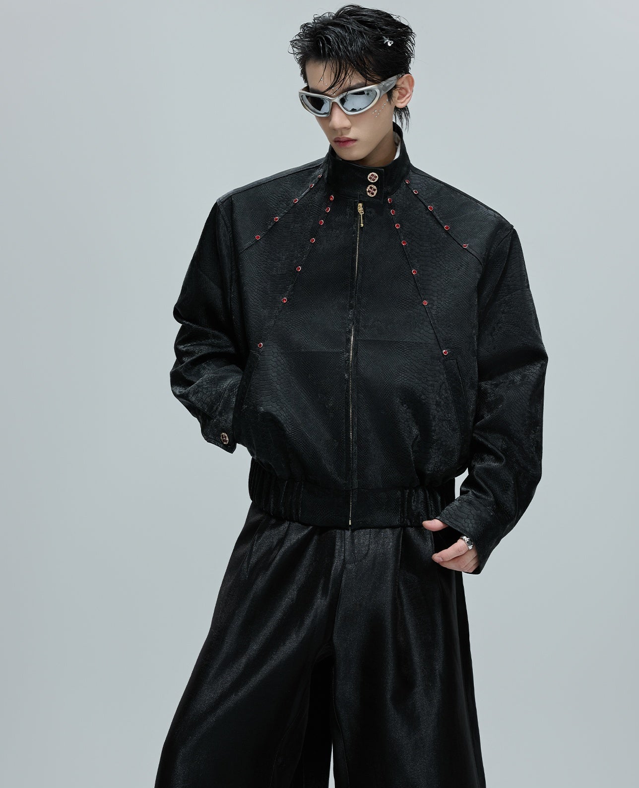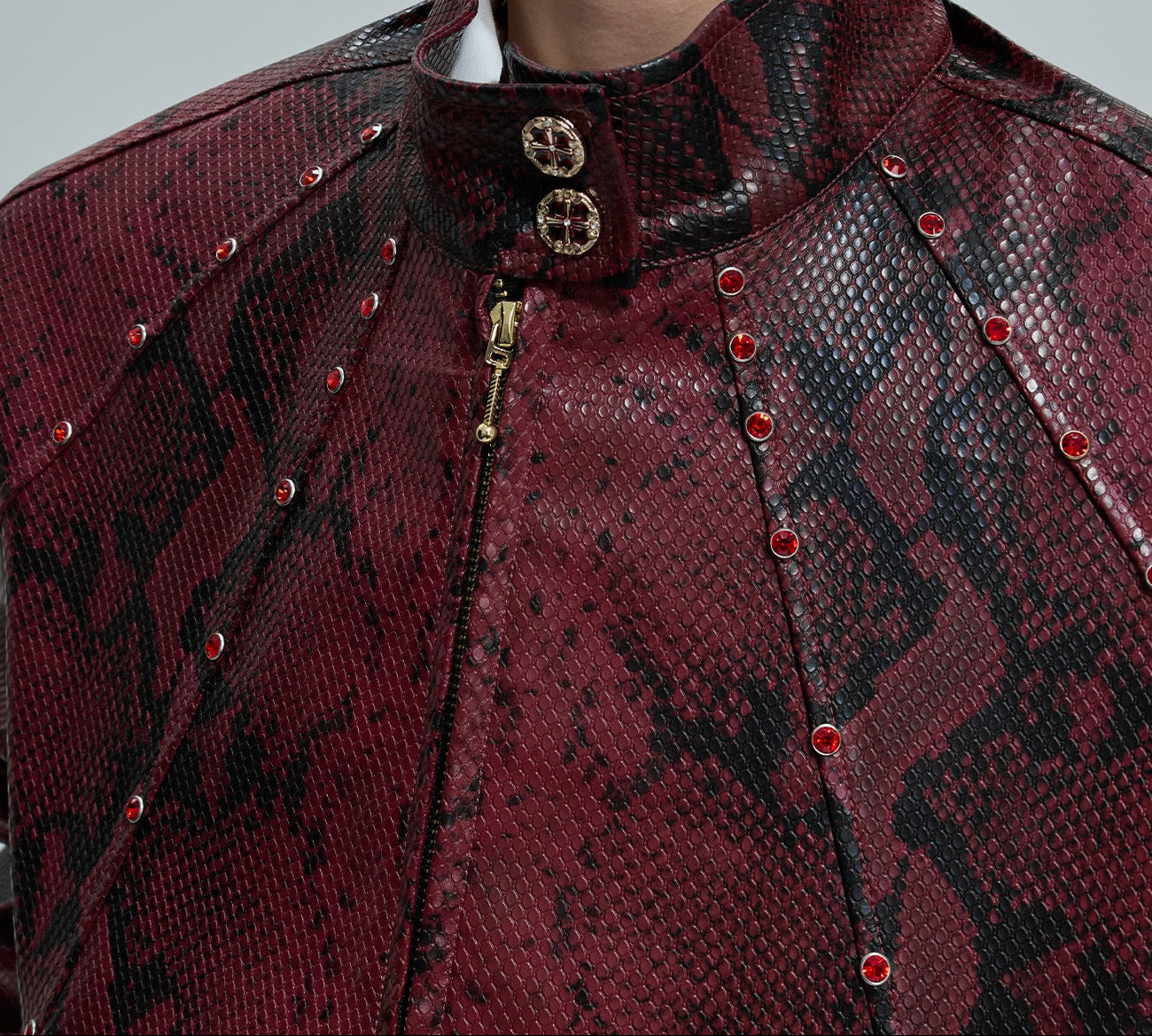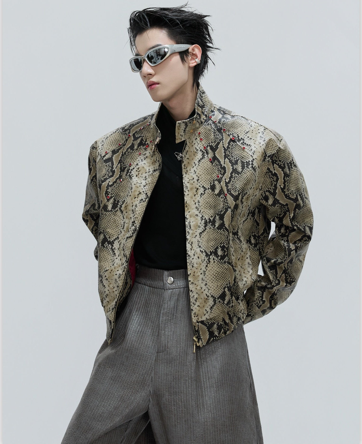 O Opium Snakeskin Studded Bomber incorpora a escuridão luxuosa do Opium Estética graças ao seu impressionante design com estampa de cobra e aplicações de rebites estrategicamente posicionadas. Esta jaqueta bomber premium combina um visual de couro exótico com funcionalidade urbana urbana e impressiona com seu corte curto e construção característica de gola alta. Disponível em duas cores marcantes – preto clássico e vermelho bordô luxuoso – este bombardeiro atinge o equilíbrio perfeito entre a elegância gótica e o estilo de rua contemporâneo.