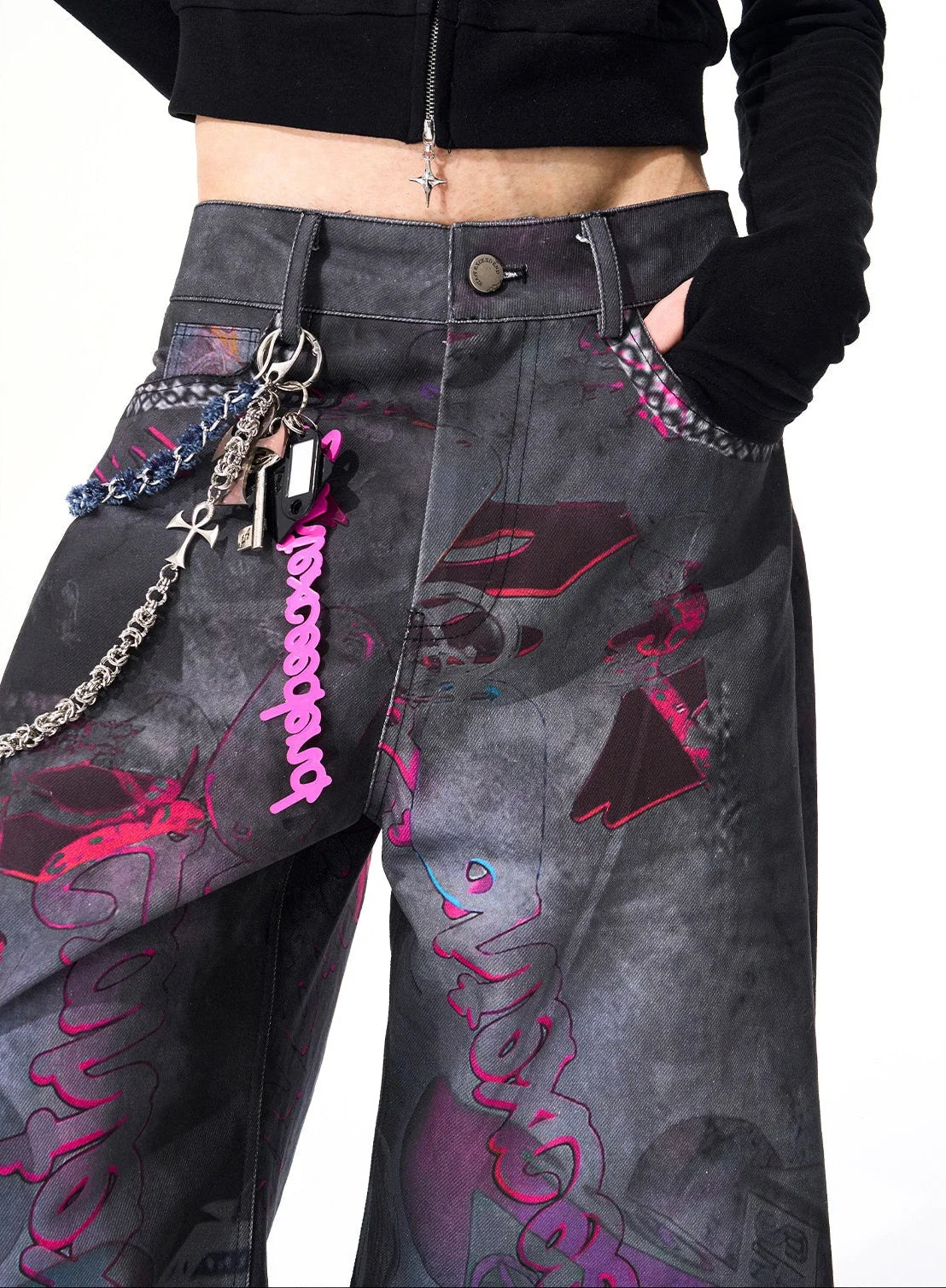 • Абстрактные символы граффити и мистические персонажи по всей штанине.