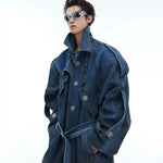 De Opium Denim Matrix Coat revolutionerar modern streetwear -estetik genom dess dekonstruerade silhuett och innovativa snitt. Denna avantgarde-trenchrock kombinerar klassiskt denim hantverk med futuristiska designelement och skapar ett unikt uttalande för den urbana garderoben. Den karakteristiska dubbel-break-konstruktionen med kontrasterande denimpaneler och avtagbara bälten möjliggör mångsidiga stylingalternativ.