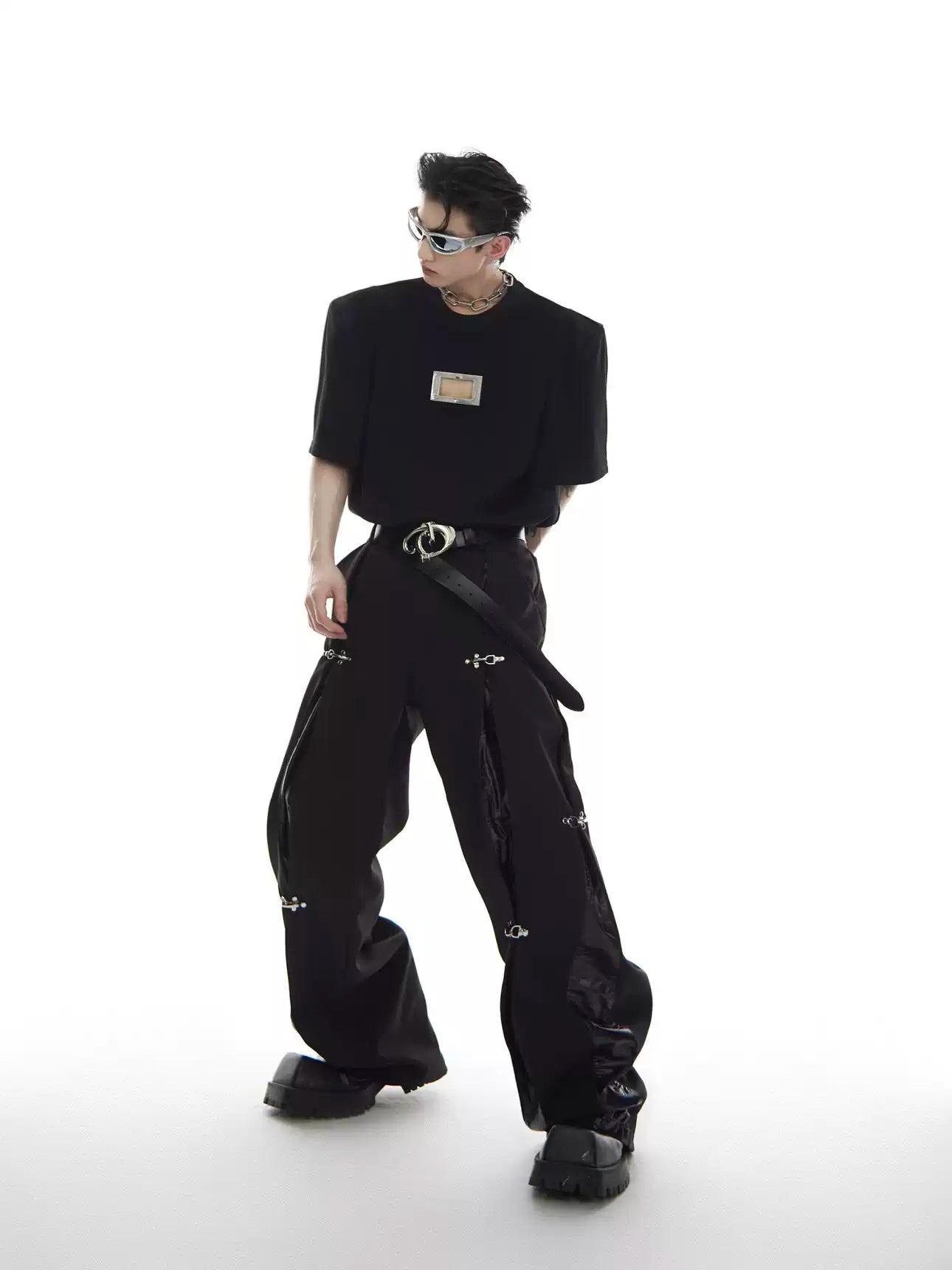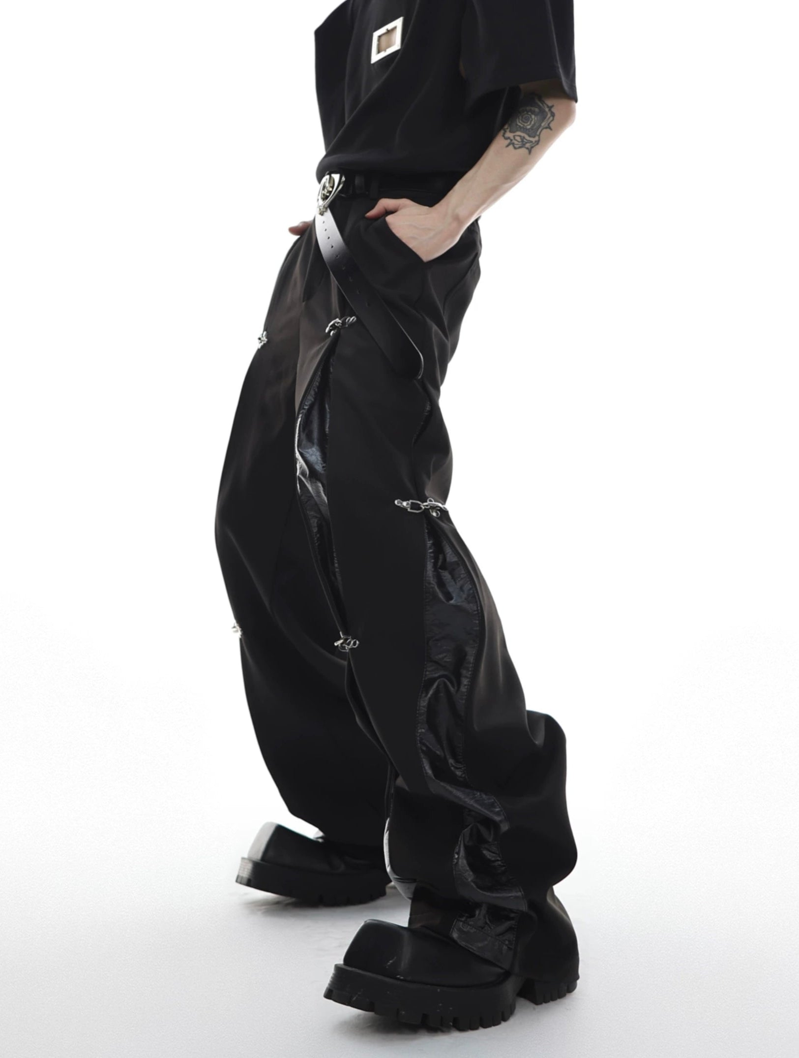 鸦片金属扣长裤